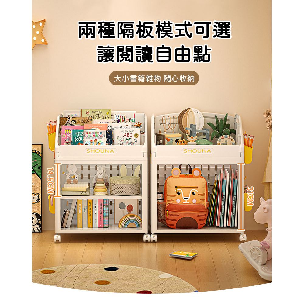 【AOTTO】洞洞板兒童雙層附輪書本收納架(AS-604)