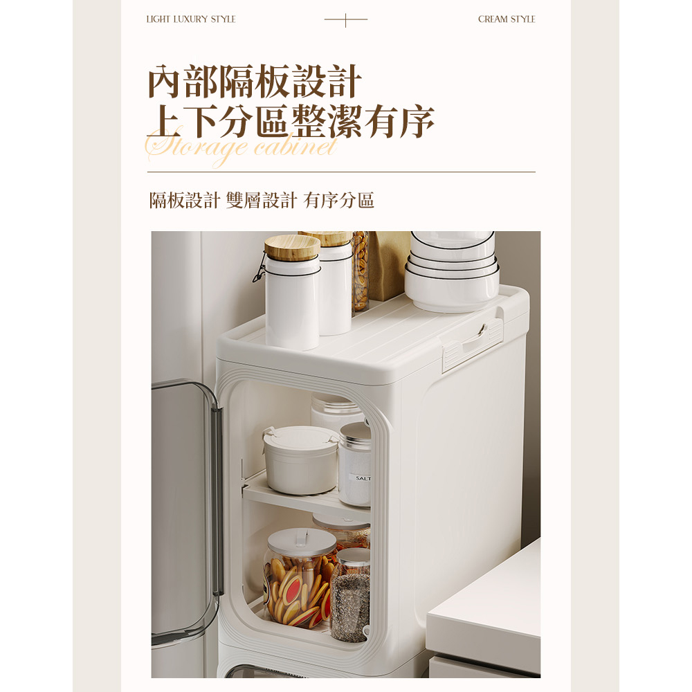 開門設計 防塵防水 夾縫收納 不佔空間 附萬向輪 移動方便 尺寸:20*33*127cm±3% 材質:PP