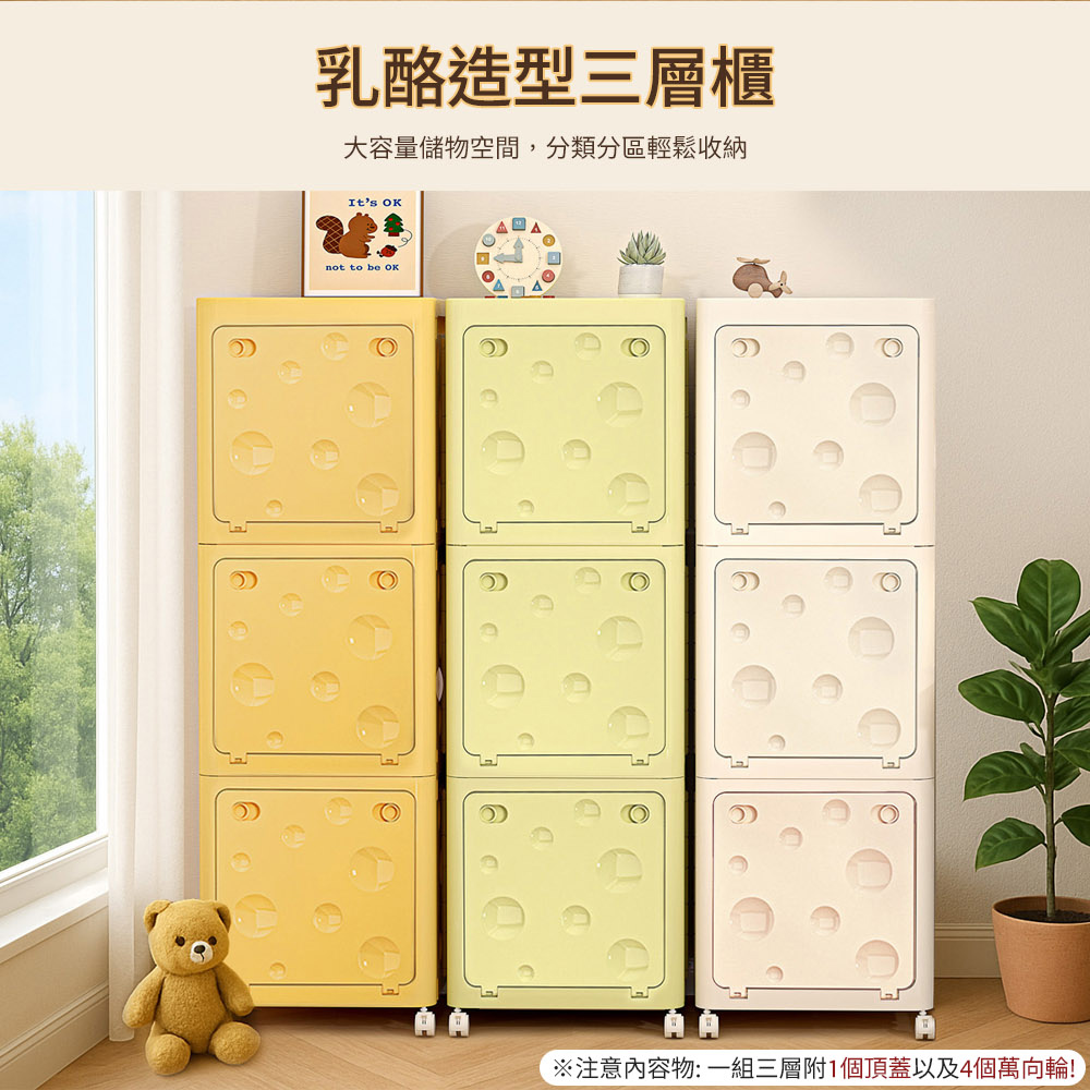 【AOTTO】38面寬乳酪造型附輪三層收納櫃-奶油色(AC-209W)