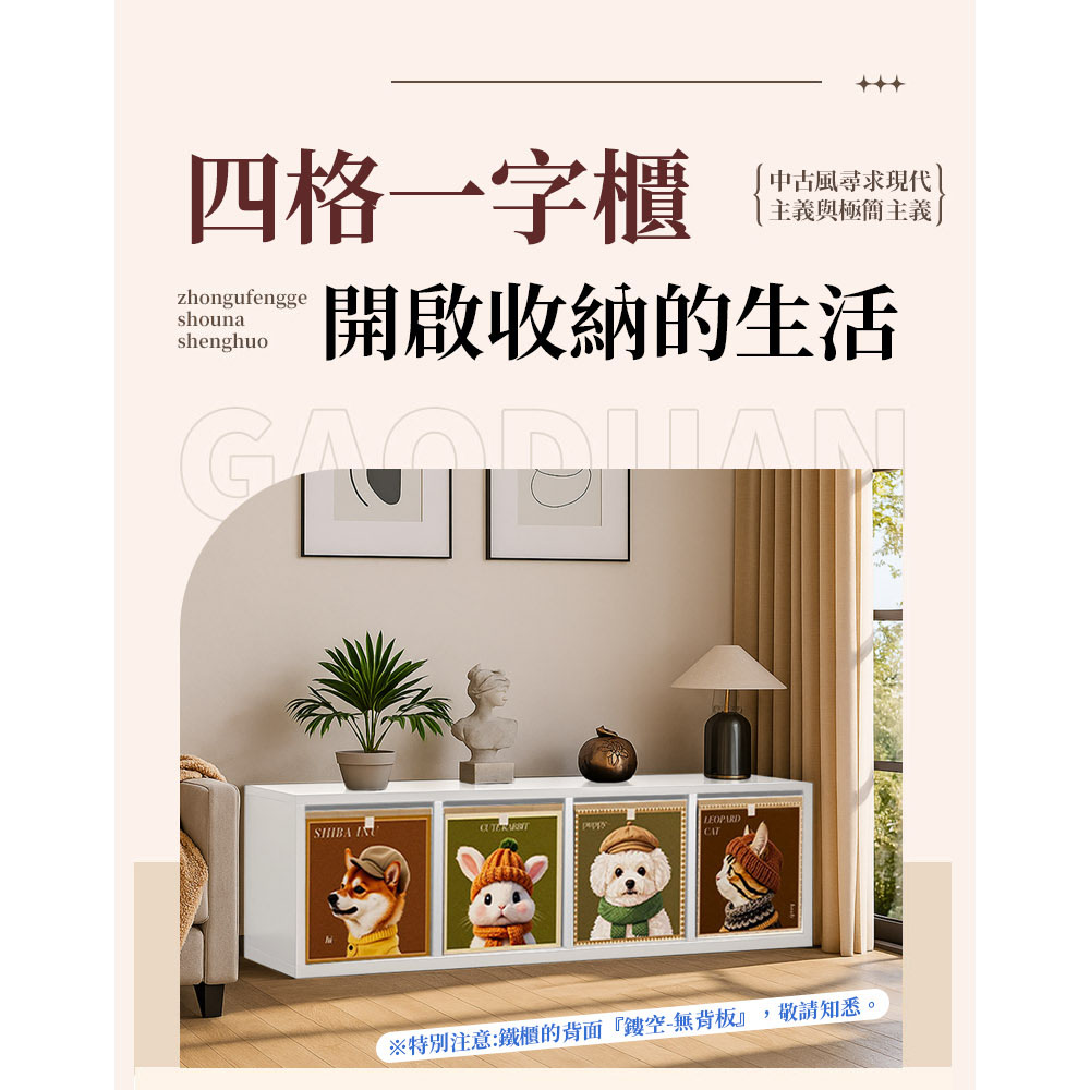 【AOTTO】落地鐵製布藝四格收納櫃(AL-701)