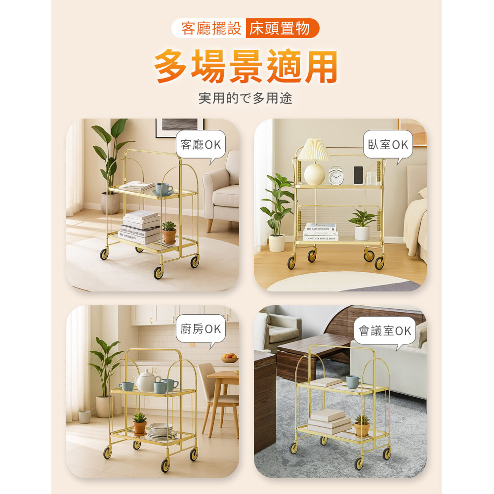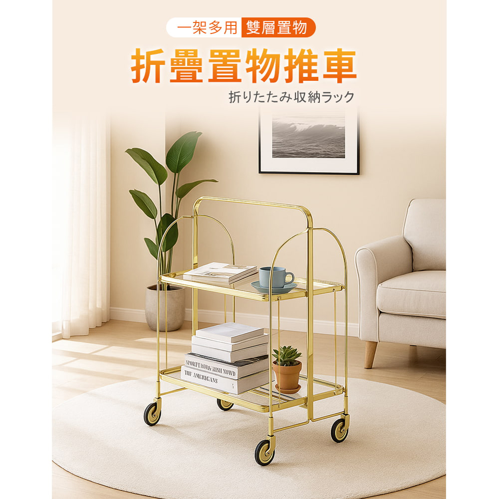 【AOTTO】免組裝輕奢質感折疊置物推車(AS-301)