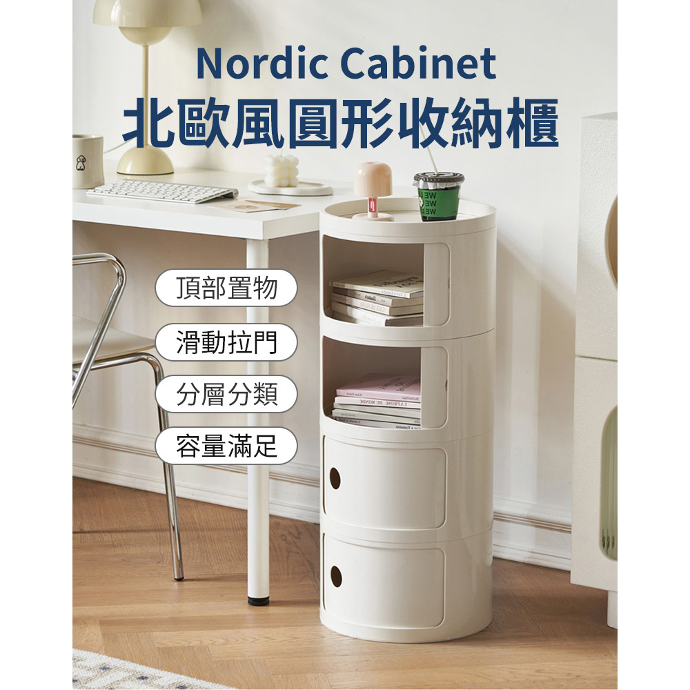 【AOTTO】免組裝北歐風圓形拉門四層收納櫃(AC-224)