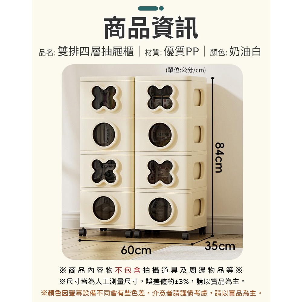 【AOTTO】60面寬趣味圈叉附輪雙排四層抽屜收納櫃(AC-060)