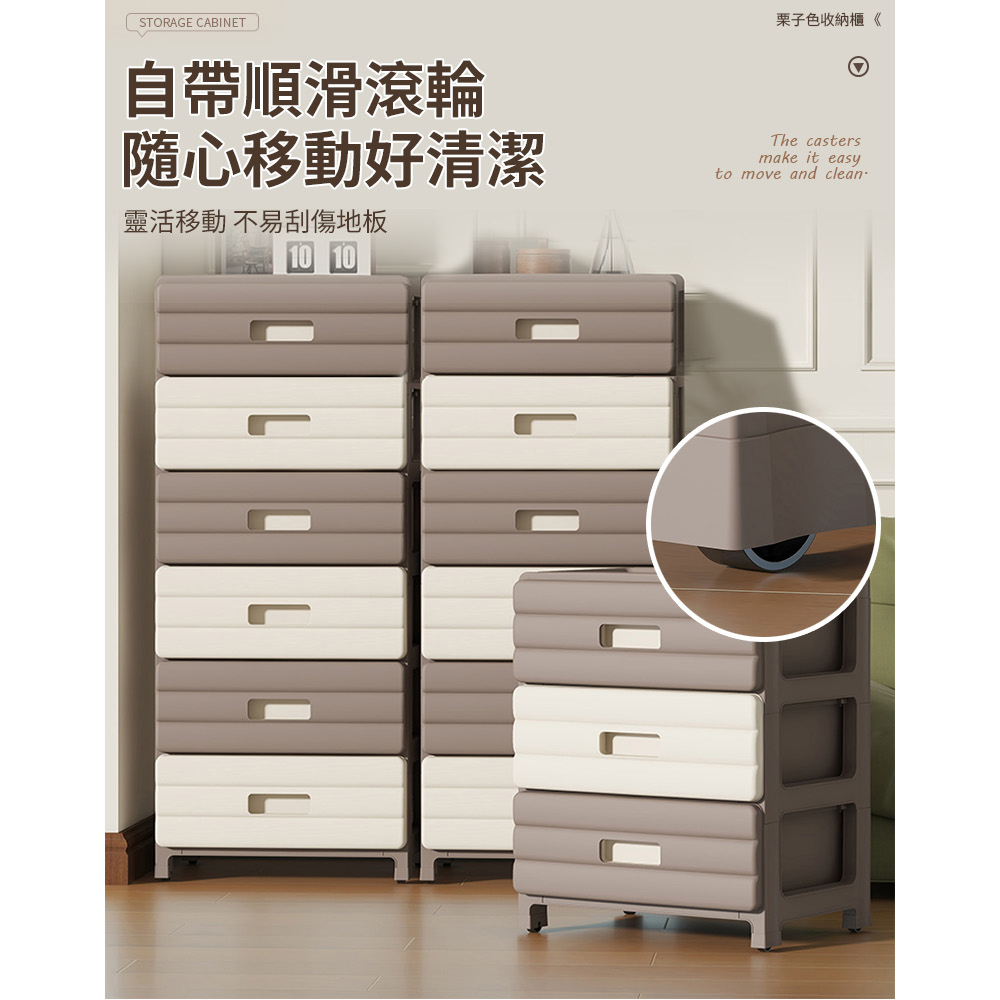 【AOTTO】35面寬麵包附輪六層抽屜收納櫃-栗子色(AC-035)