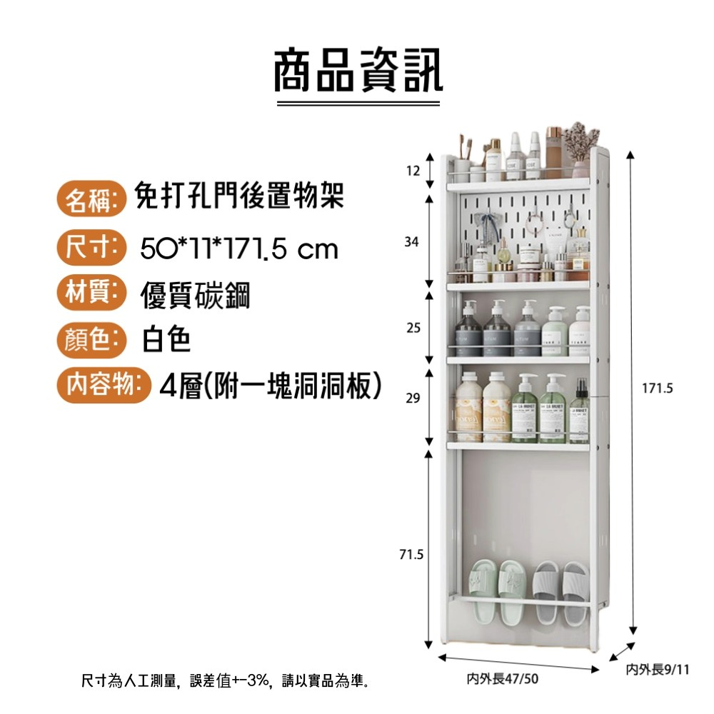 【AOTTO】免打孔門後落地四層收納置物架(KC-035)