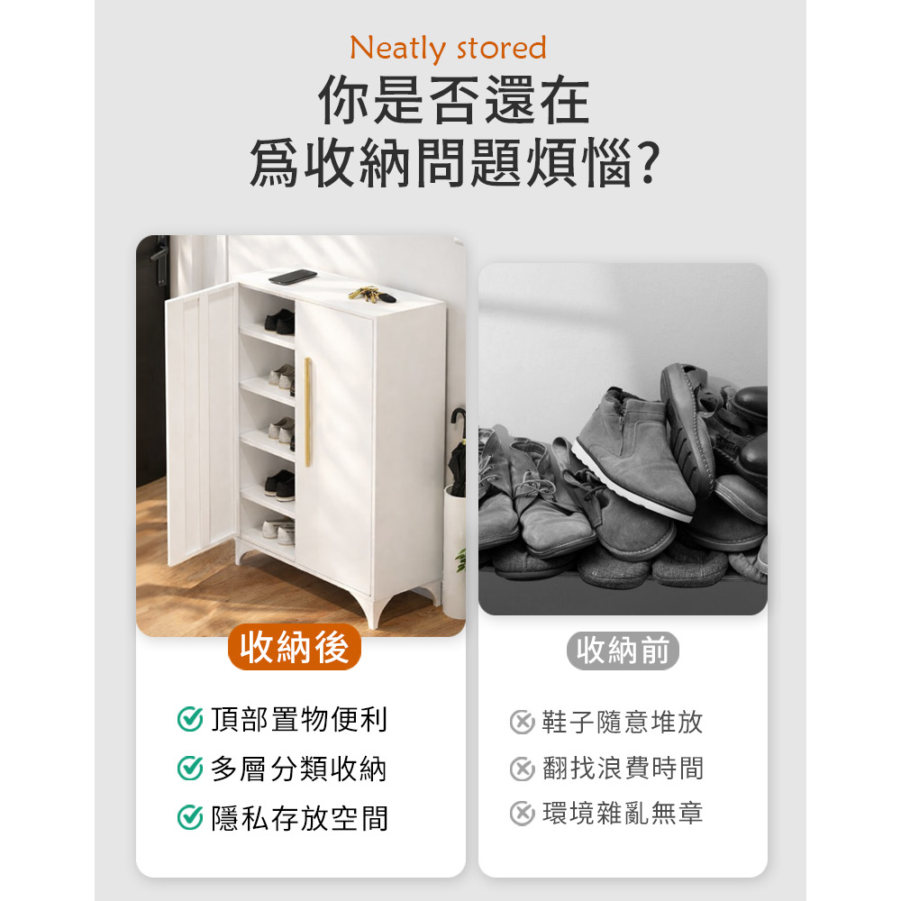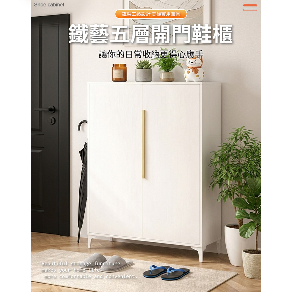 【AOTTO】簡約現代鐵藝五層開門鞋櫃(TA-7002W)