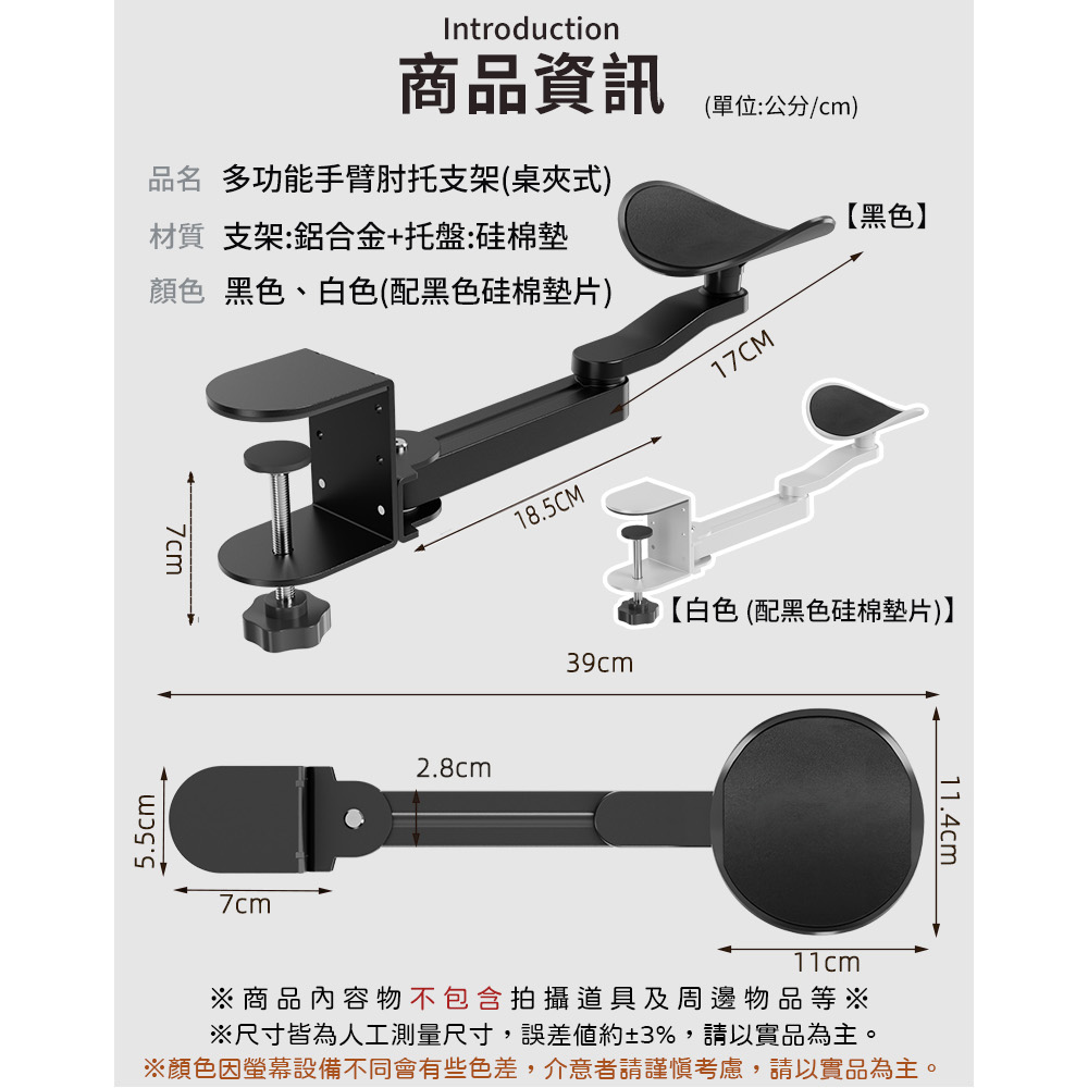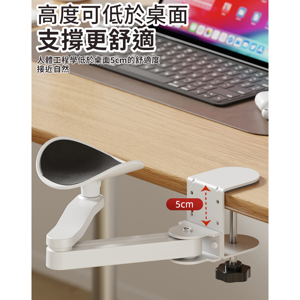 舒適辦公 舒緩肩部疲勞 人體工學 多種角度 無需打孔 簡易安裝 鋁合金材質 堅固耐用尺寸:如圖