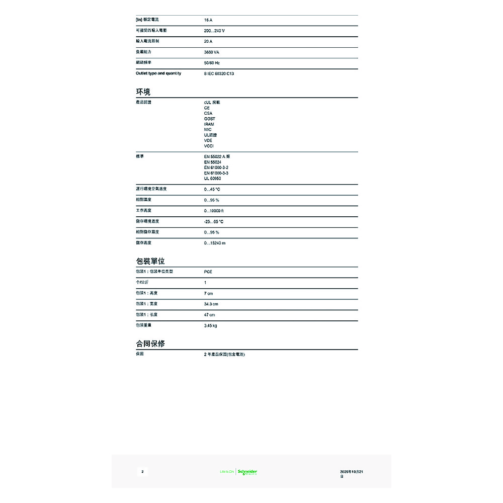 可接受的輸入電壓 200-240交流電壓 (VAC)
