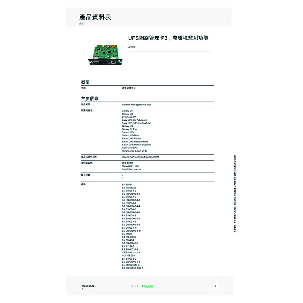 昌運監視器APC AP9641 多功能UPS網路管理卡