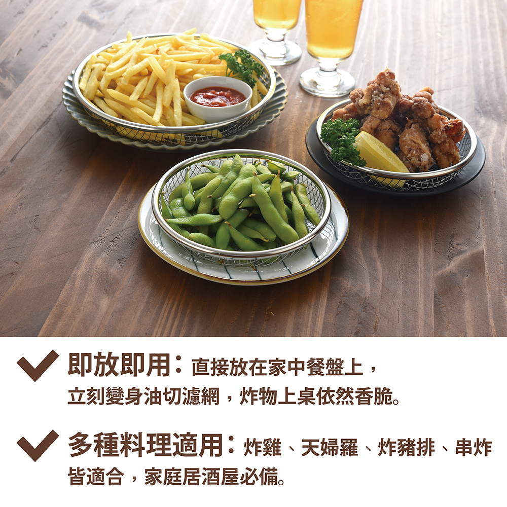 適合炸物、烤物、燙青菜的 瀝油瀝水 使用。