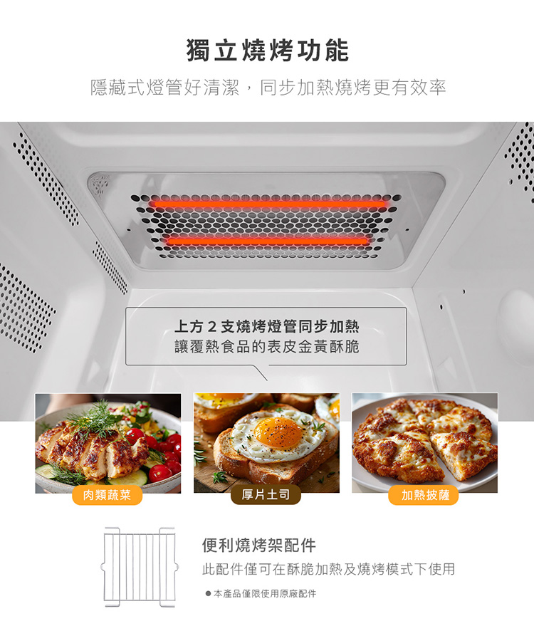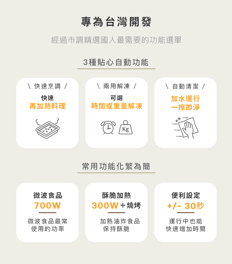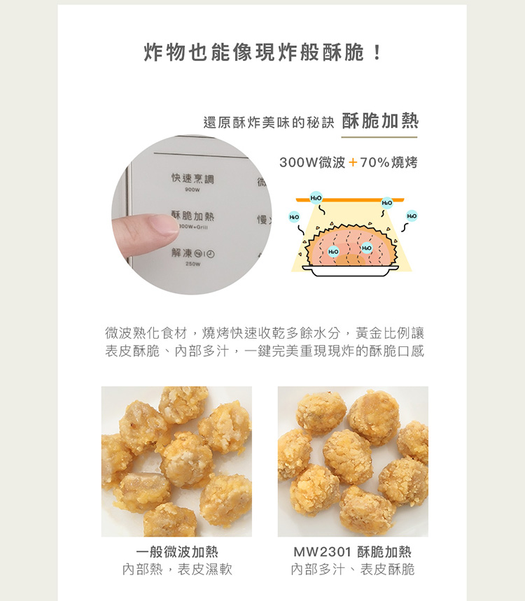 ● 酥脆加熱,快速烹調,解凍功能