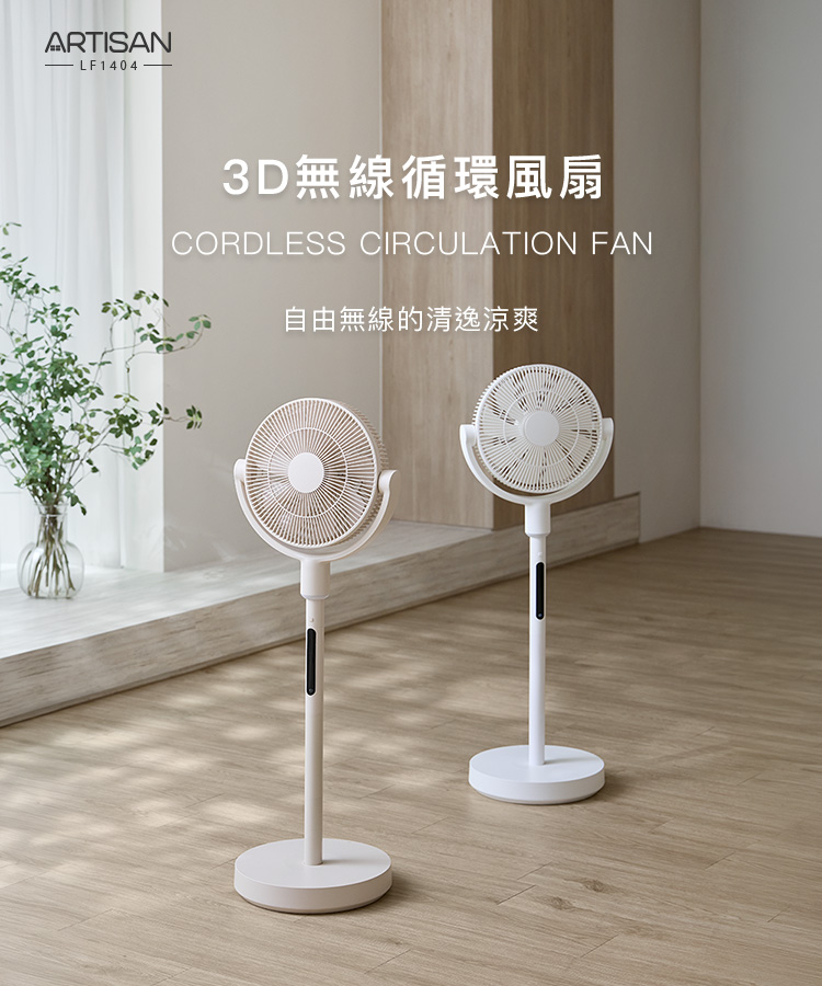 【丞洋企業】ARTISAN 3D無線循環風扇LF1404W-杏色(台灣品牌)