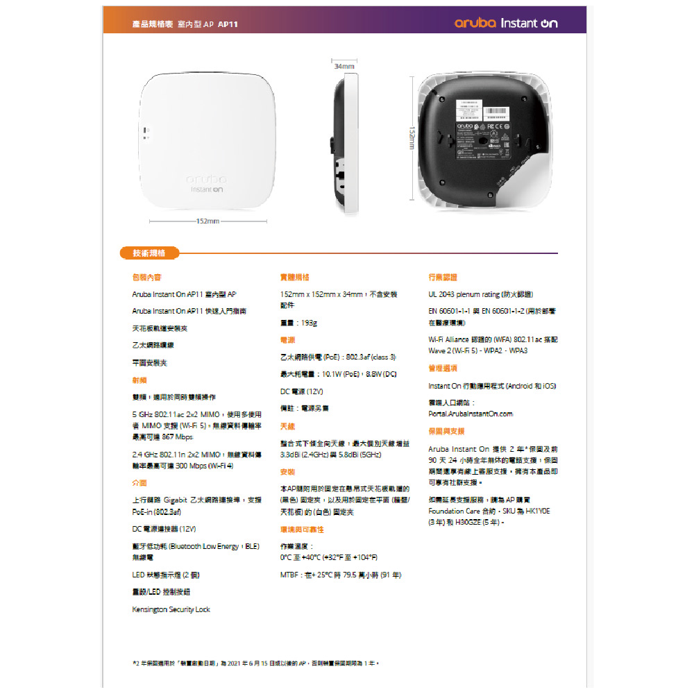 昌運監視器Aruba HPE Networking Instant On 無線基地台AP11 室內型AP(R2W96A)