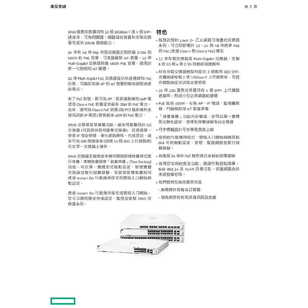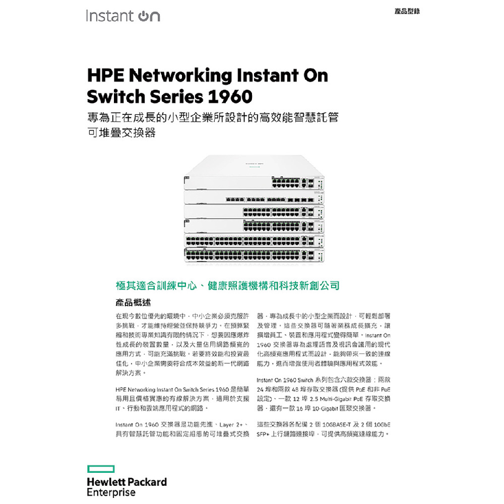 昌運監視器Aruba HPE Instant On 1960 24G 2XT 2XF 24埠網路交換器(JL806A)