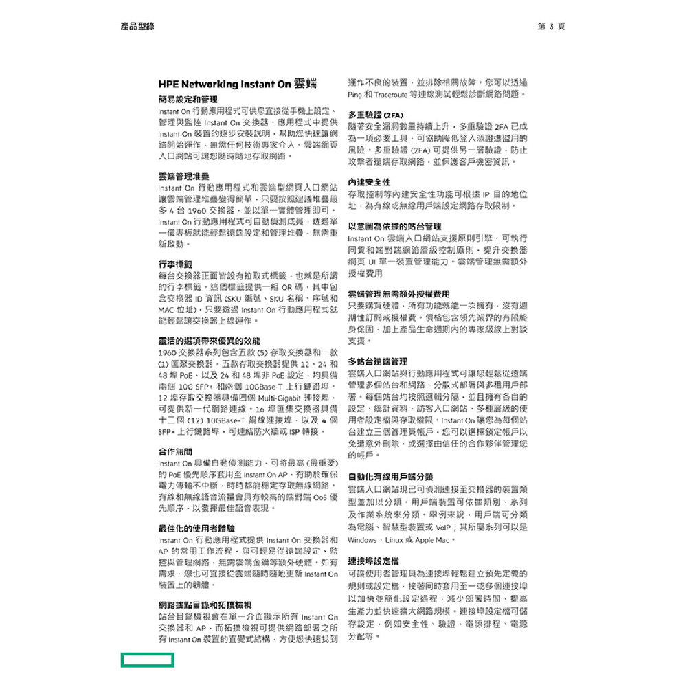 管理功能: Aruba Instant On Cloud、網頁瀏覽器、SNMP 管理程式