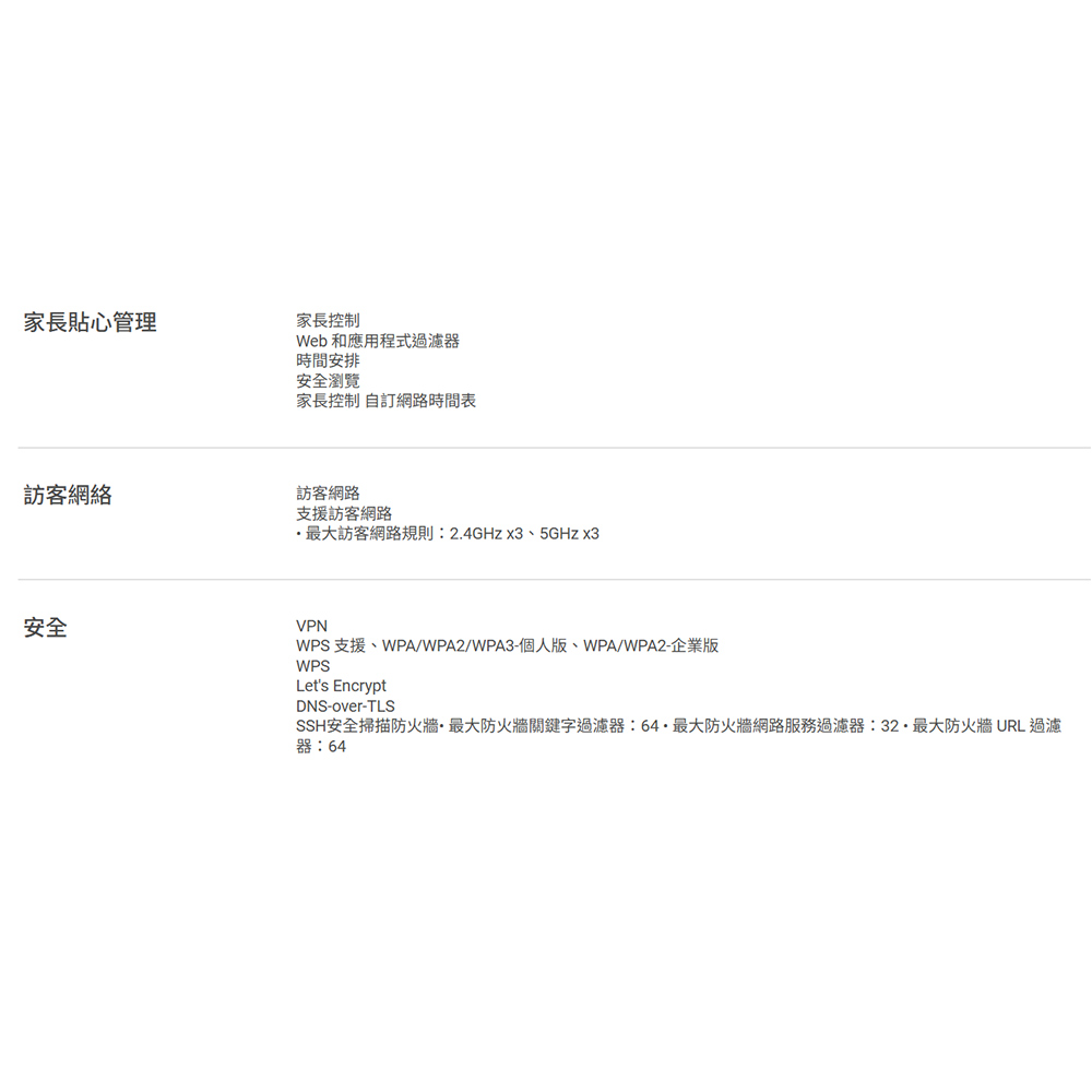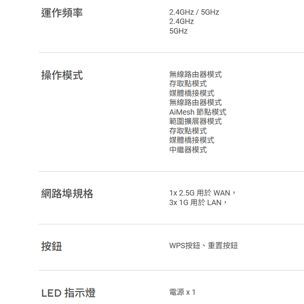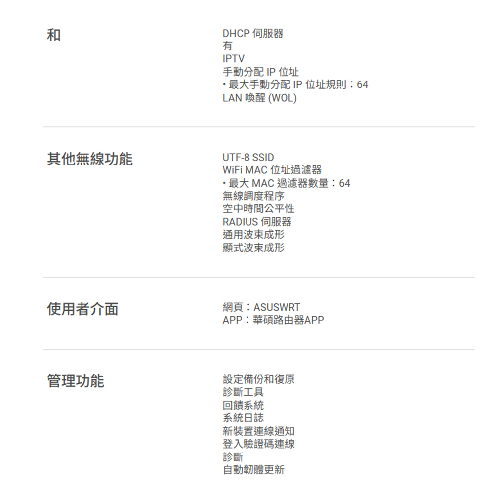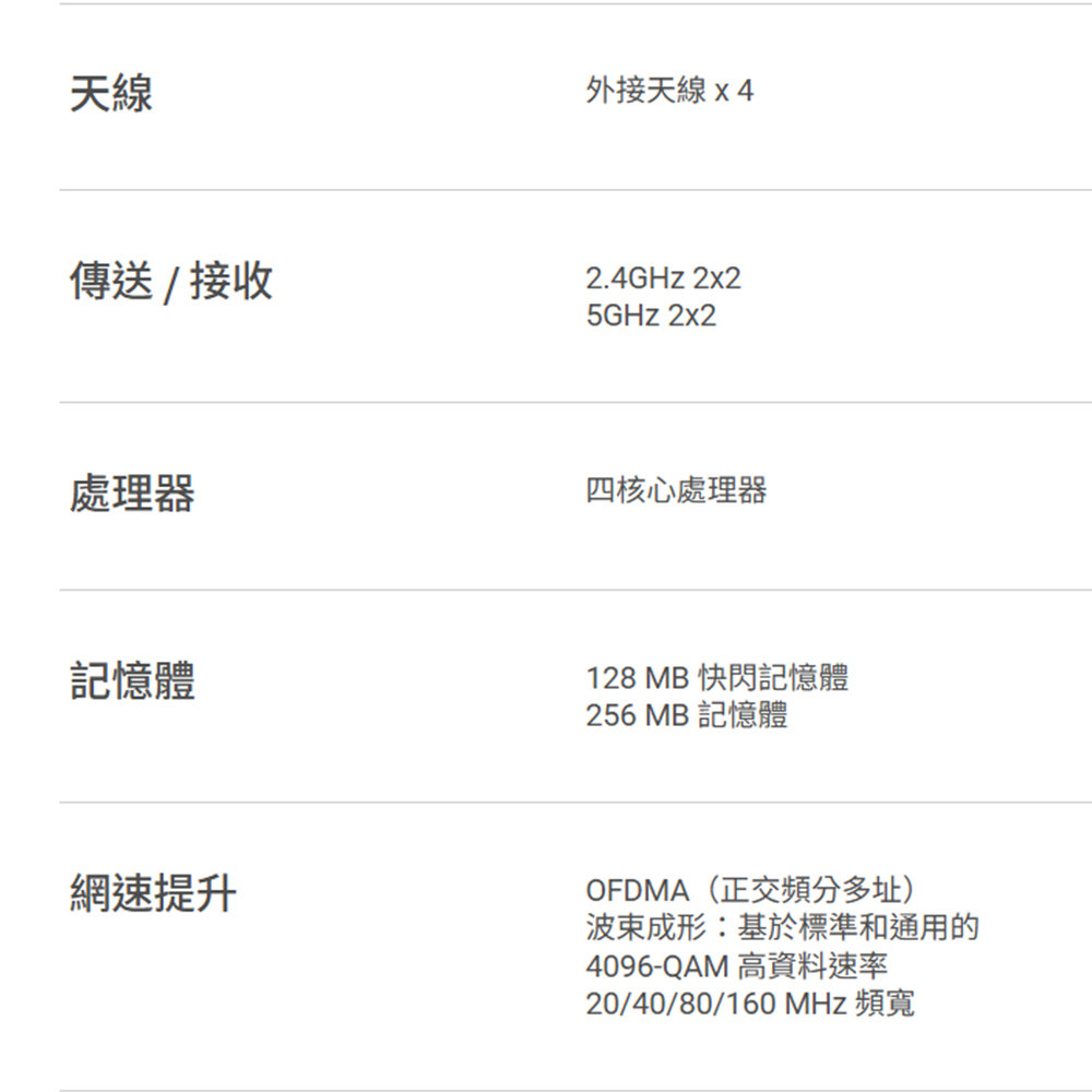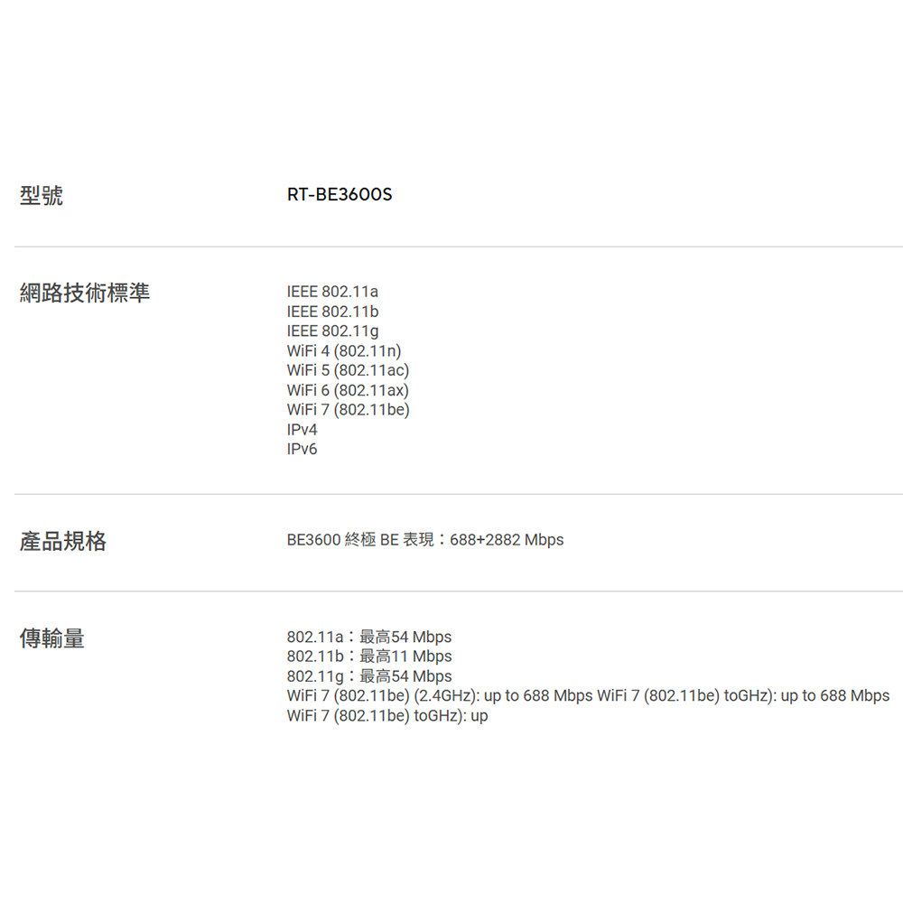 -超高速WiFi 7 : WiFi 7(802.11be)雙頻可擴充路由器將速度提升至3600 Mbps,4096-QAM將單一頻段的傳輸速度提高1.2倍。