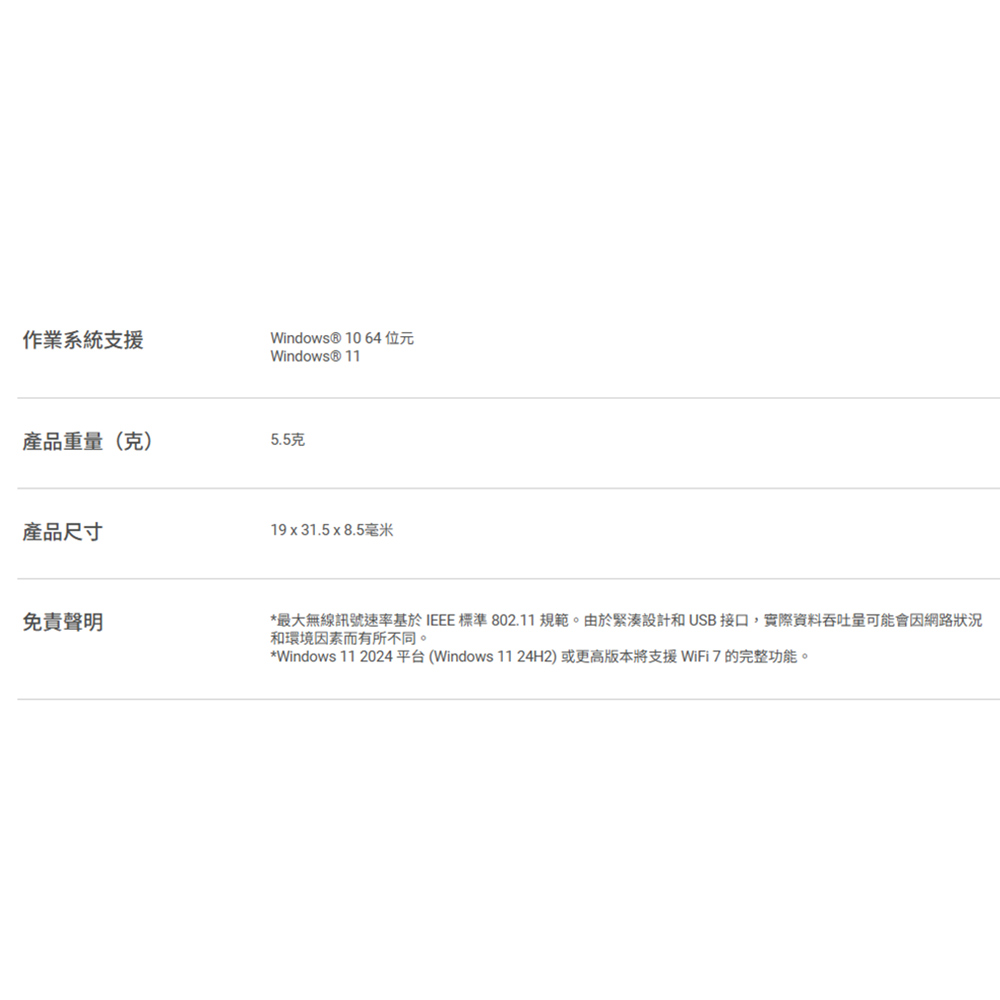 -精巧型WiFi 7 USB網卡 : 以時尚小巧的尺寸體驗超快WiFi。