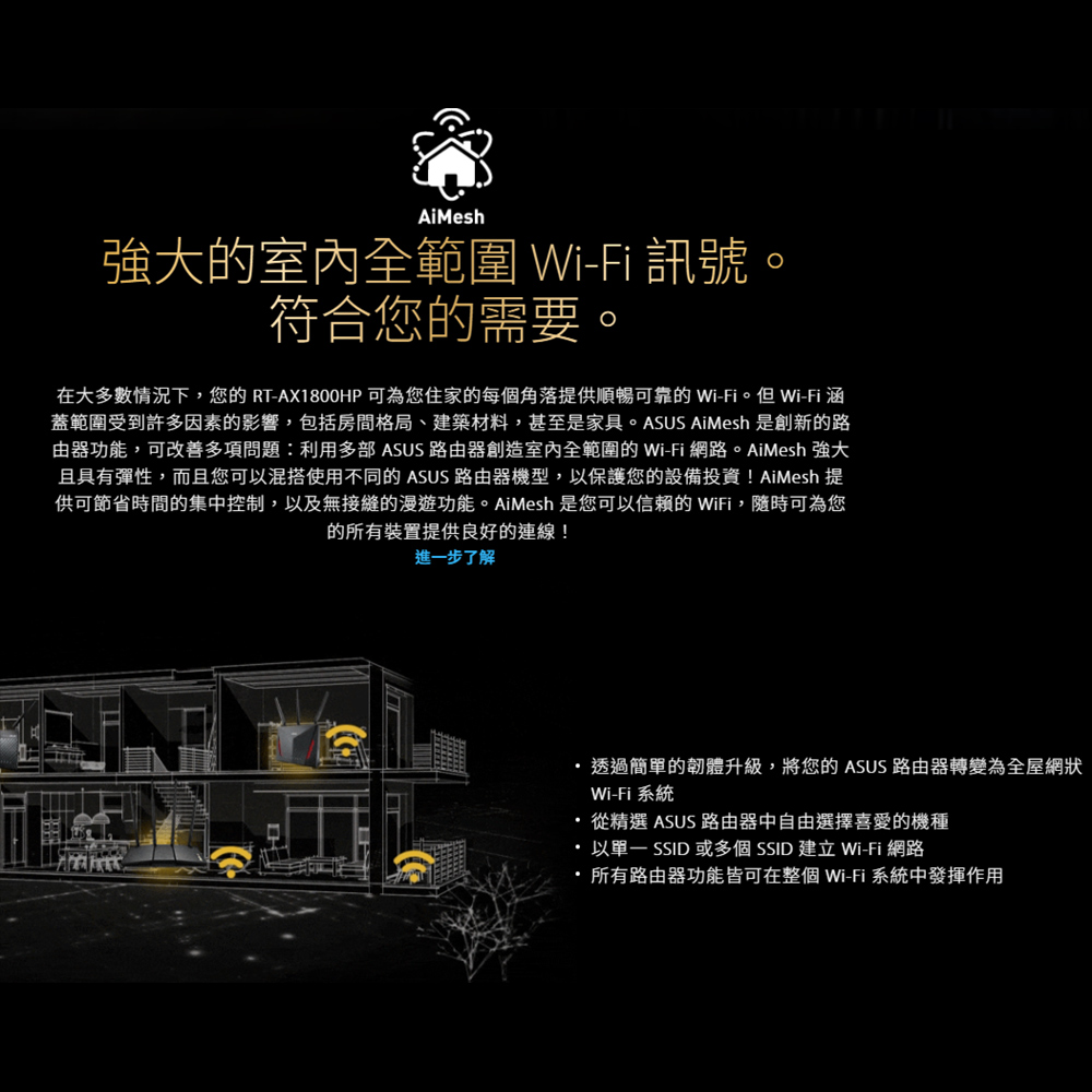 -支援AiMesh : 可相容支援AiMesh的路由器,建立彈性且無縫漫遊的全屋網狀網路。