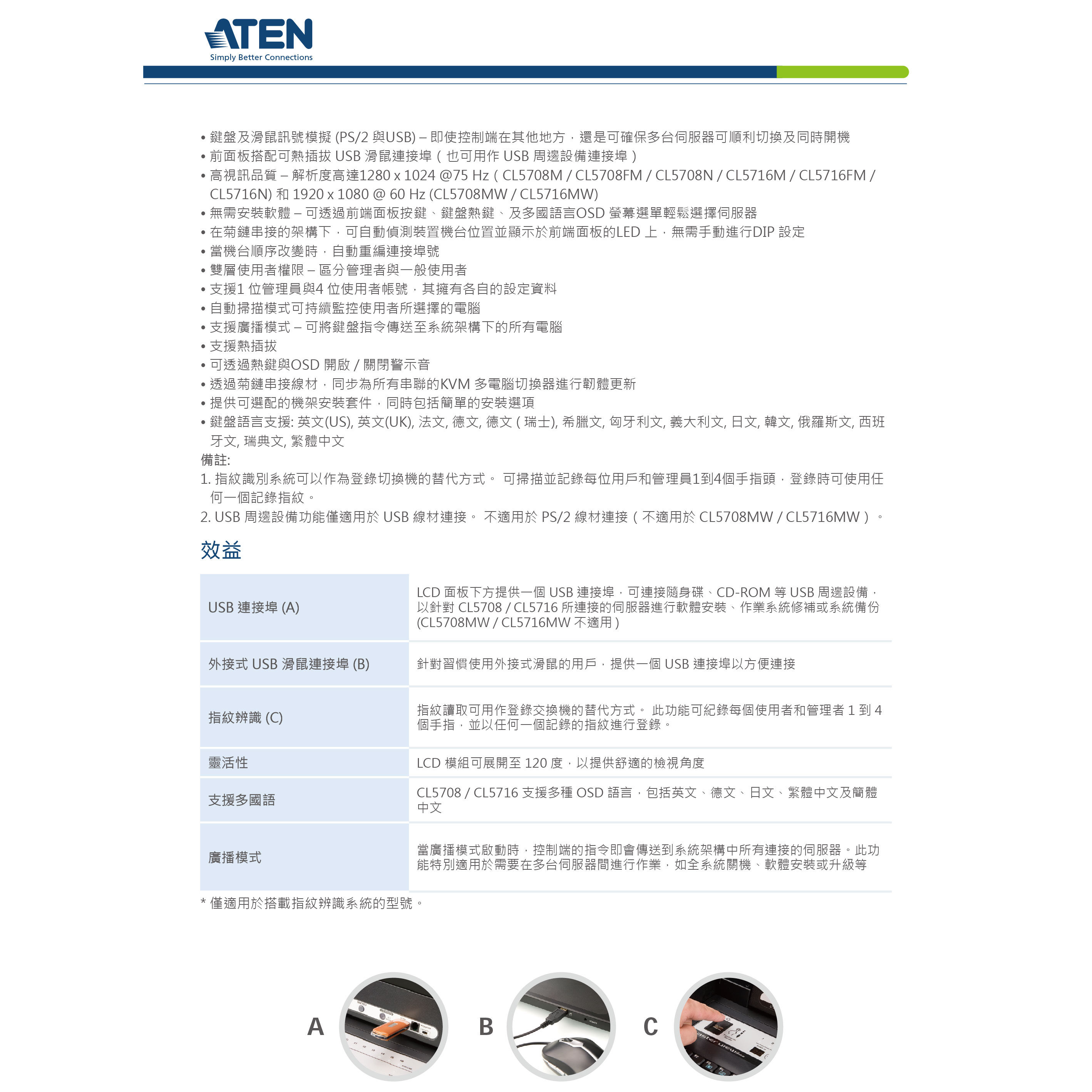 昌運監視器 ATEN 宏正 CL5716M Slideaway™ LCD KVM 抽拉式多電腦切換器 17吋