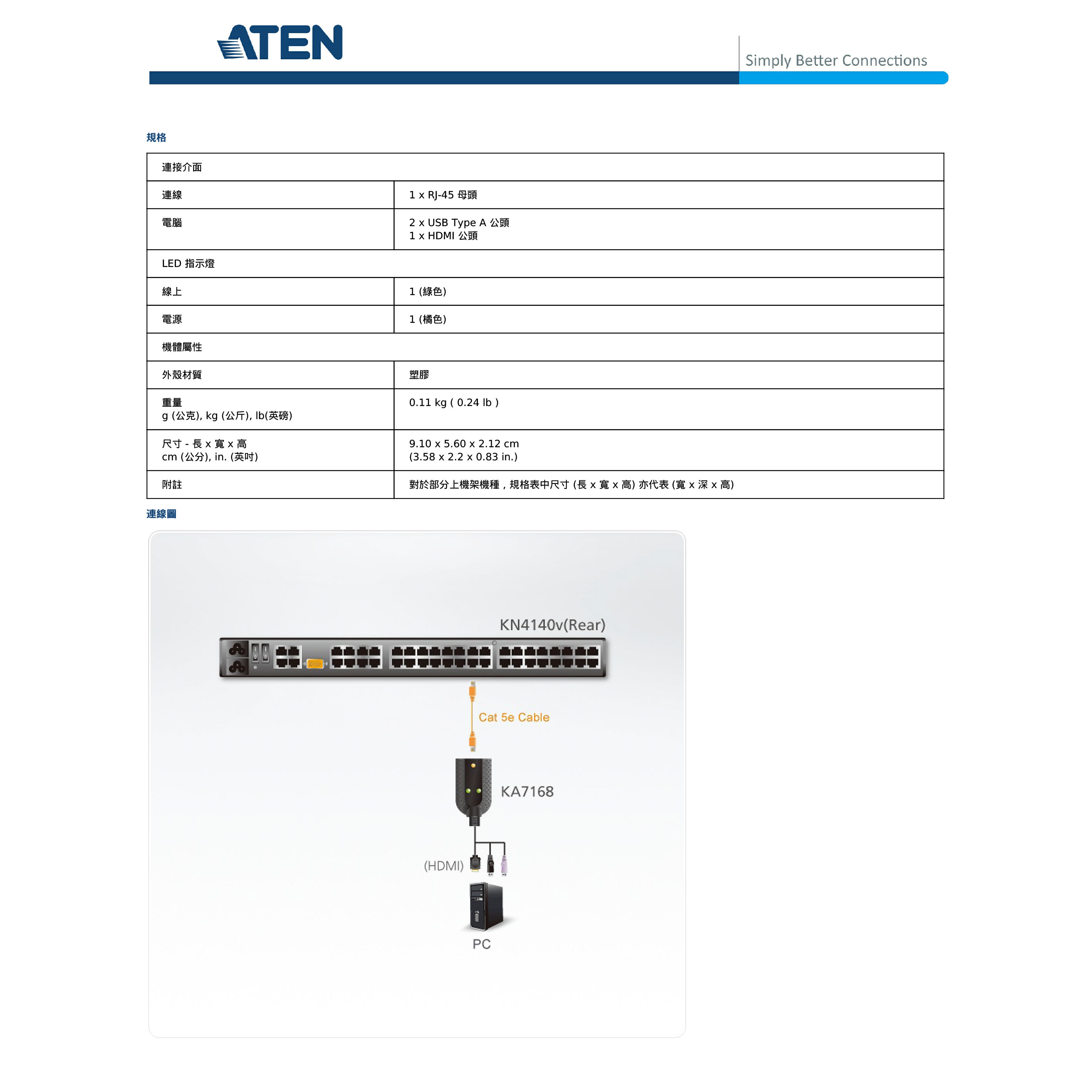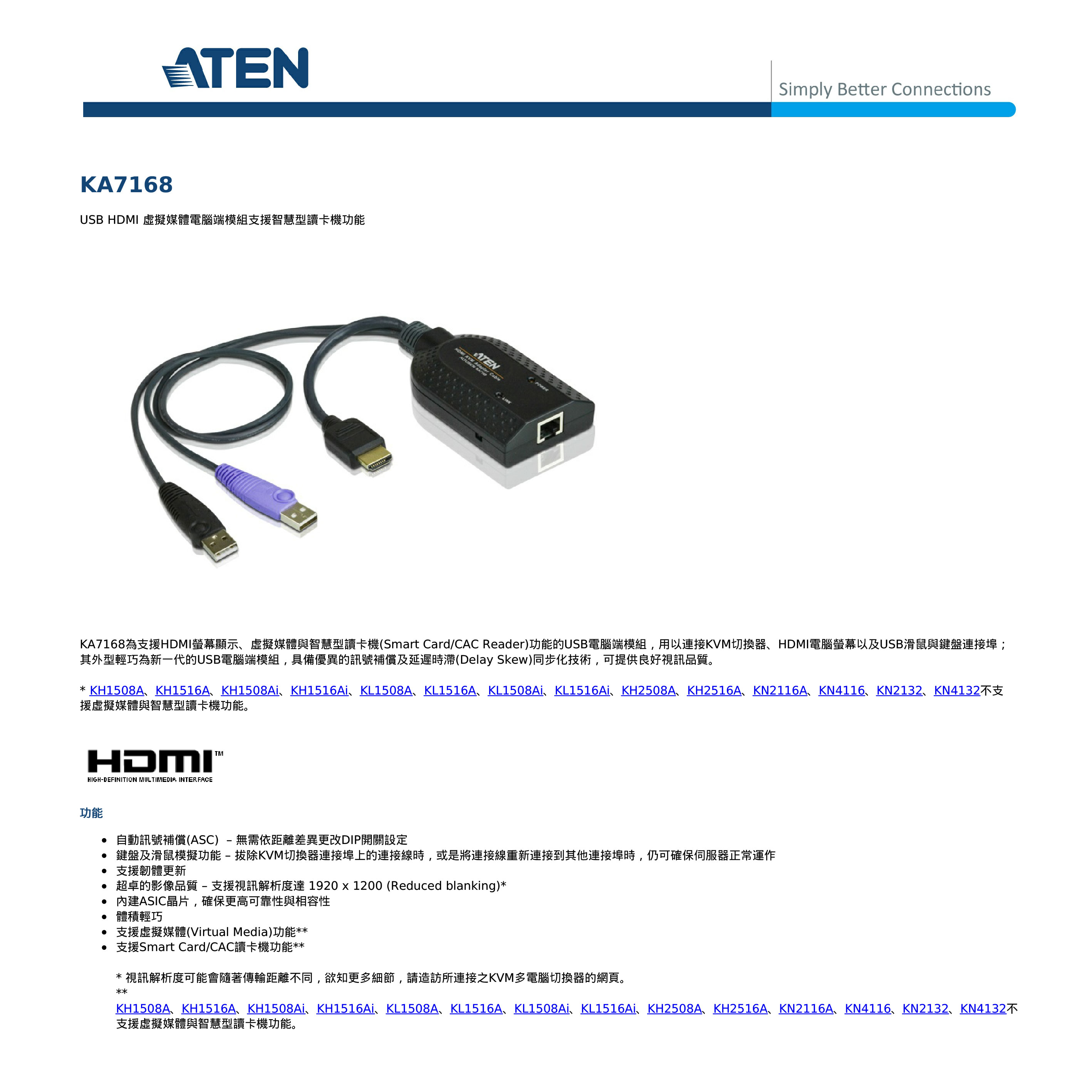 昌運監視器 ATEN 宏正 KA7168 USB HDMI 虛擬媒體電腦端模組支援智慧型讀卡機功能