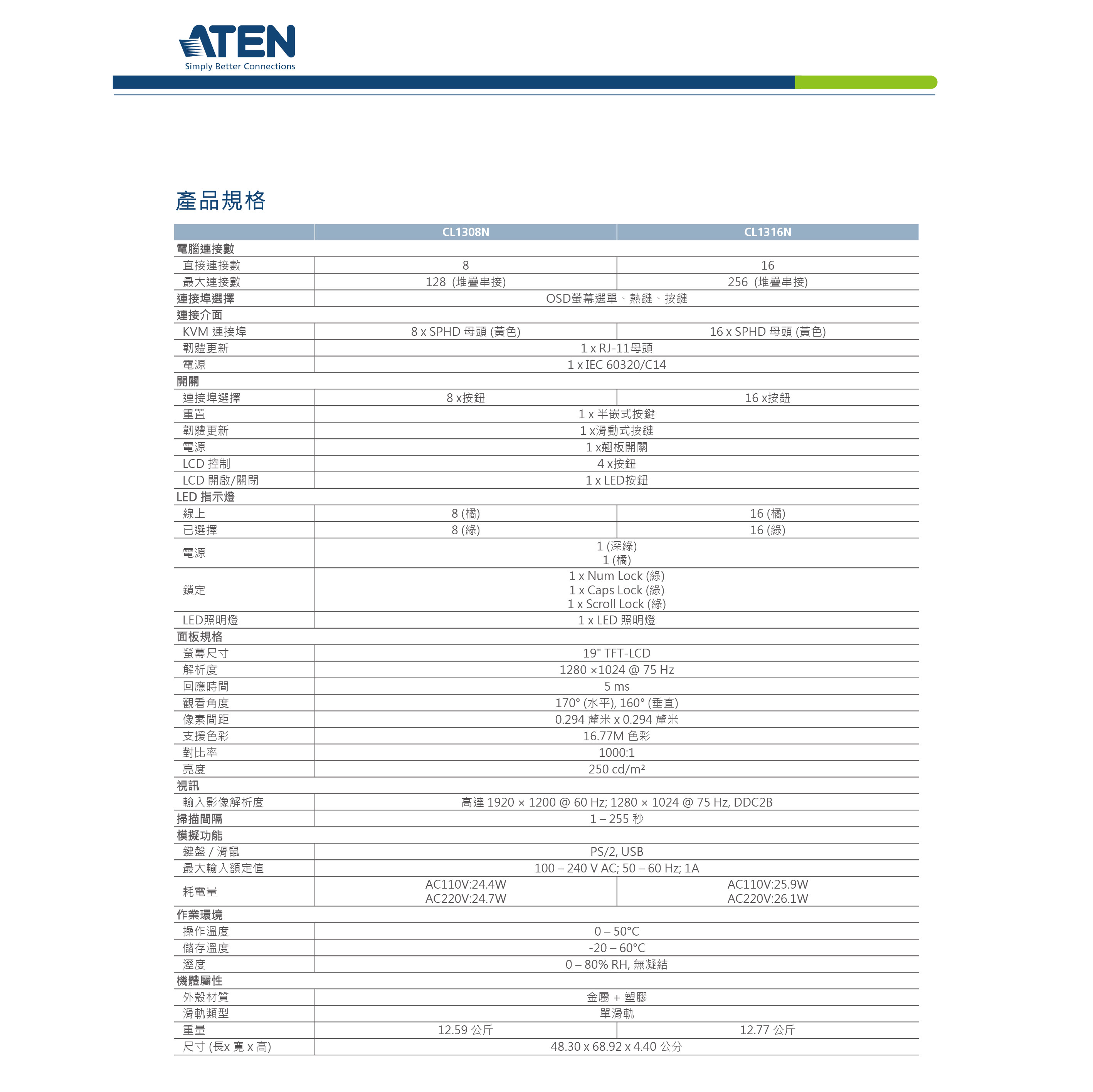 昌運監視器 ATEN 宏正 CL1308N 8埠PS/2-USB VGA單滑軌LCD KVM多電腦切換器