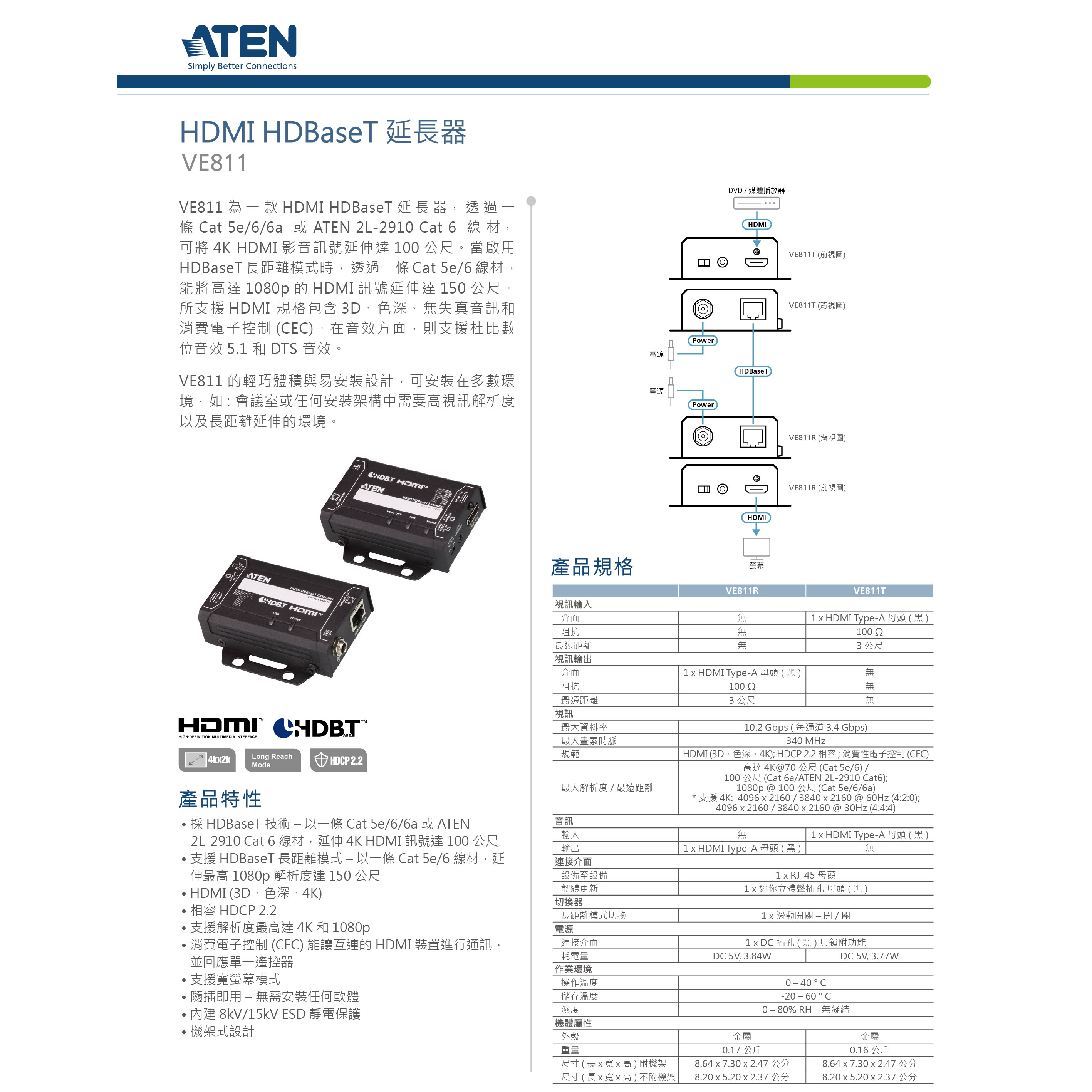 昌運監視器 ATEN 宏正 VE811 HDMI HDBaseT 延長器