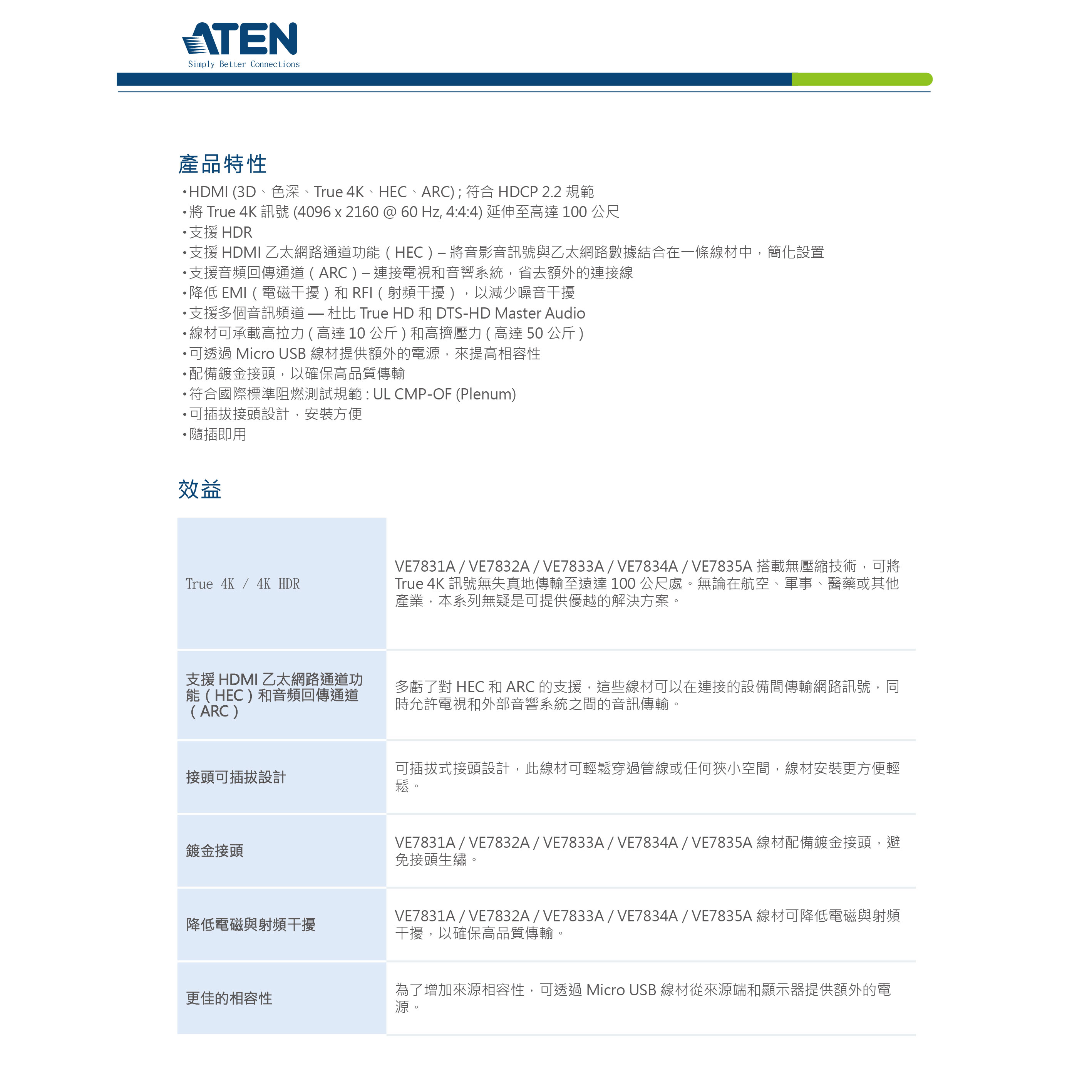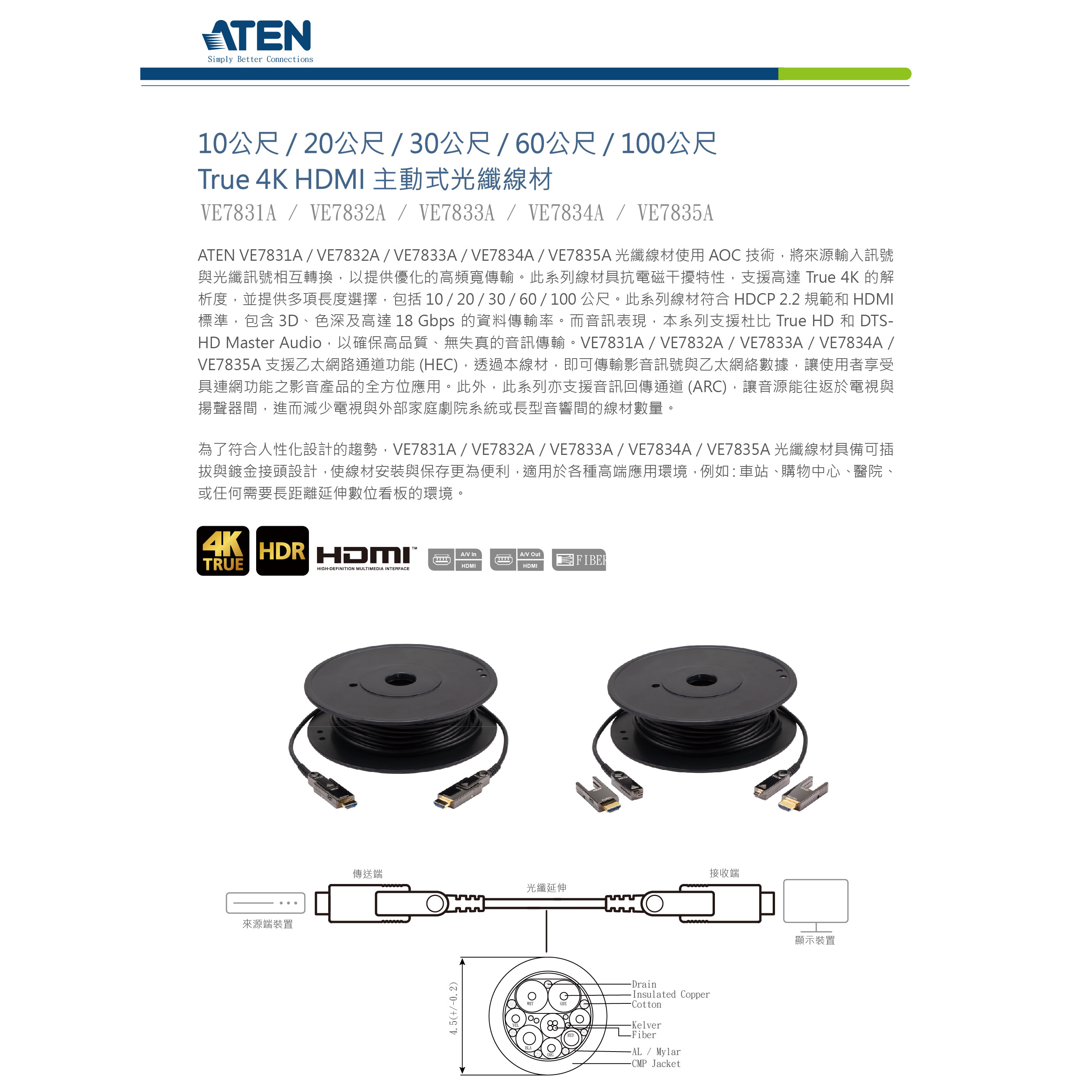 昌運監視器 ATEN 宏正 VE7831A 10公尺 True 4K HDMI 主動式光纖線材
