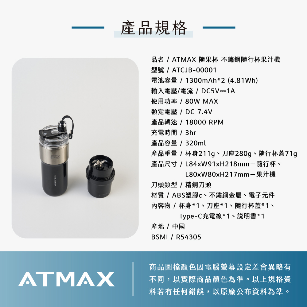 【ATMAX】Jucy-Go 隨果杯 不鏽鋼隨行杯果汁機 ATCJB-00001 隨身果汁杯 隨行果汁機 調理機