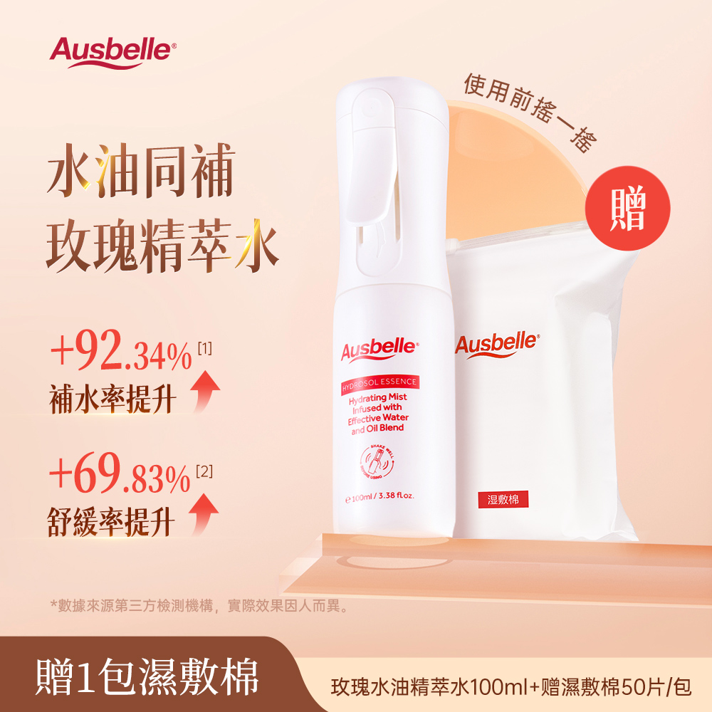 【Ausbelle】玫瑰水油精萃水保濕噴霧 (贈送濕敷綿)
