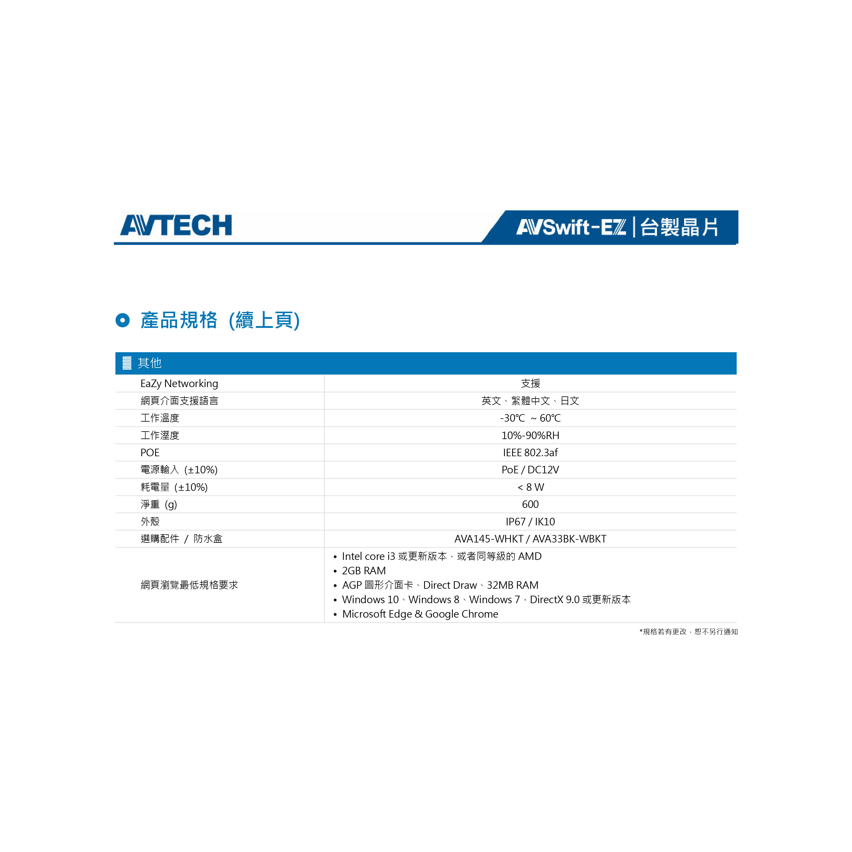 支援 POE (Power-over-Ethernet) 功能,無需另外插電源線供電