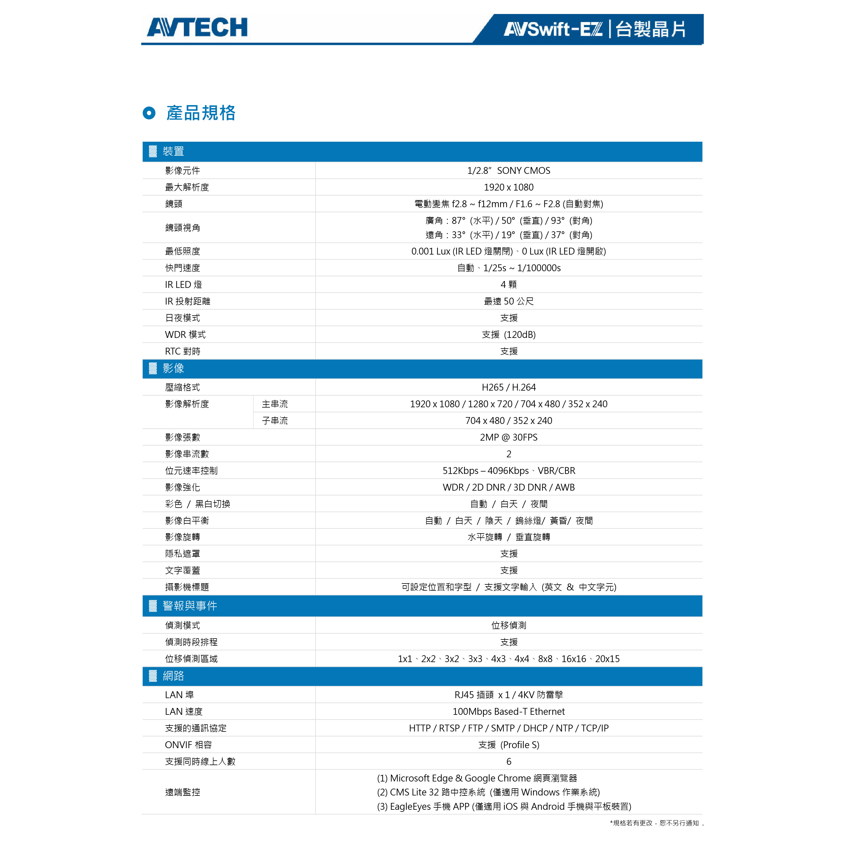 -- 支援EaZy Networking 雲端網路連線設定技術,只要透過 EagleEyes 手機 APP,三個步驟即可將裝置連線上網