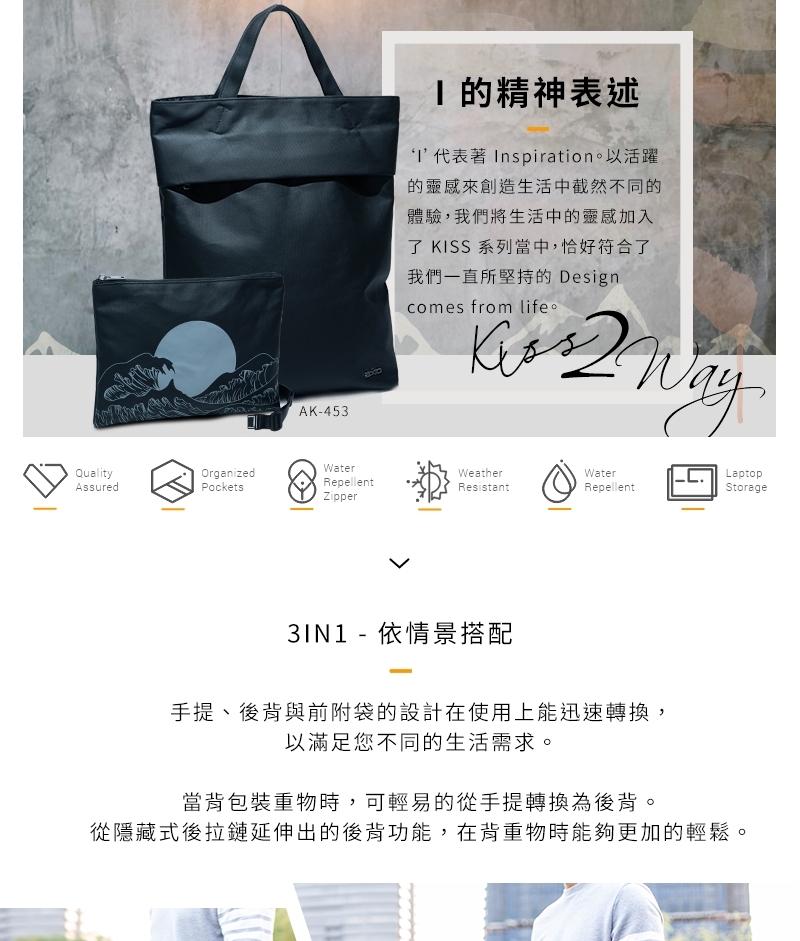 【AXIO】KISS 3WAY 多功能三用子母浮世繪帆布包(AK-453)