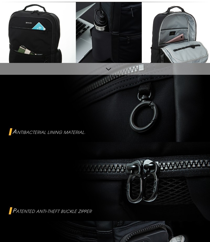 ★獨特萊卡防潑水布料 ★Sanitized瑞士抗菌內裡 ★高科技輕克減壓背帶能有效減壓50% ★獨立15.6吋筆電隔層 ★筆電絨毛保護層 ★可調式減壓背帶 ★可掛式行李箱護片 ★絲光四面彈性水壺帶 ★後隔熱網布 ★後隱形防偷隔層 ★尼龍拉鍊+金屬拉片尺寸: 29cm X 42cm X 12cm