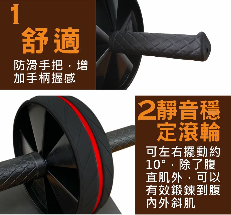 主要材質:健腹輪:鐵管,手把:TPR熱可塑性橡膠