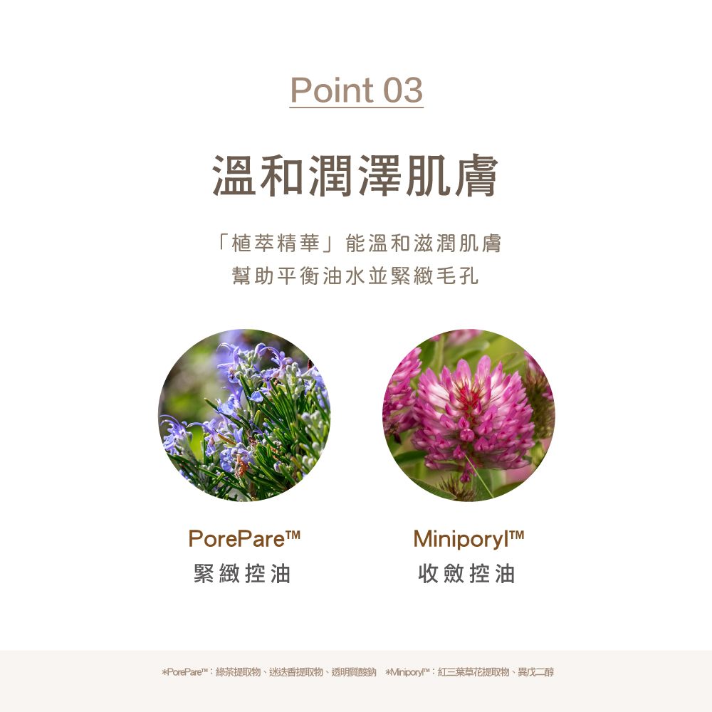 2.底妝不浮粉:添加植萃成分,能維持肌膚潤澤度,預防因乾燥產生的脫妝浮粉