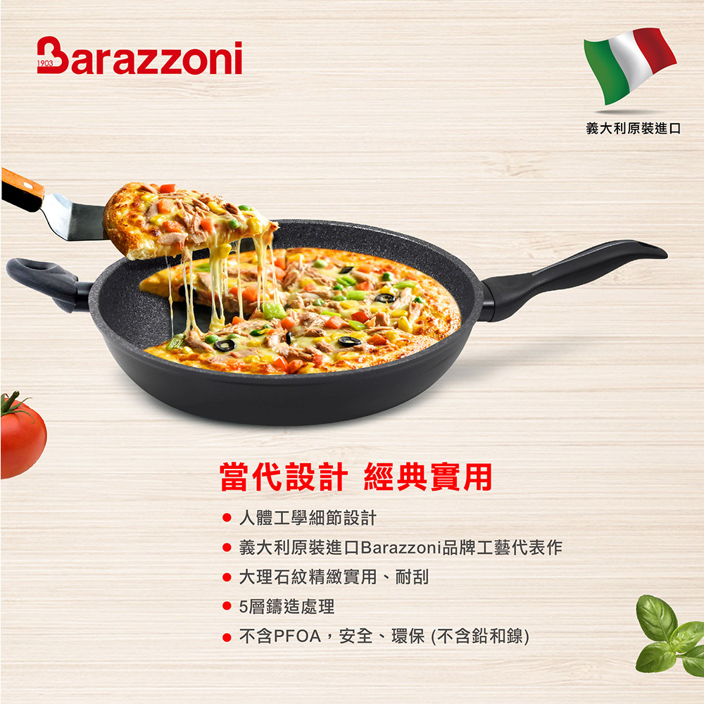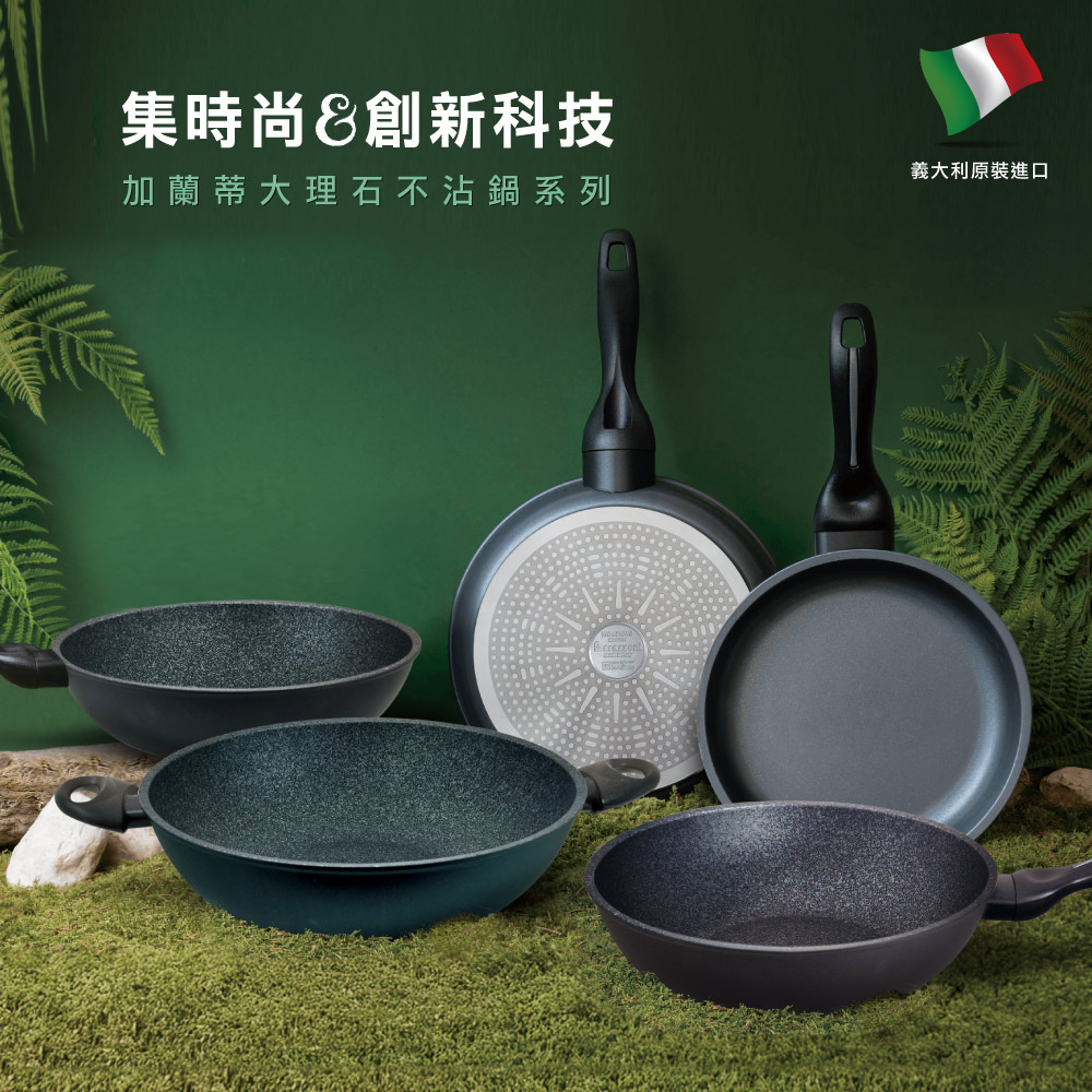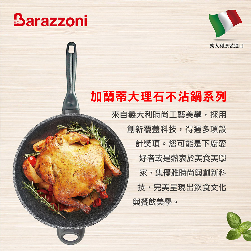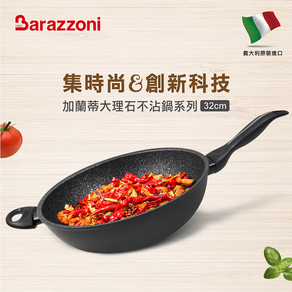 【義大利Barazzoni】義大利原裝進口 加蘭蒂IH大理石不沾鍋/單柄炒鍋32cm