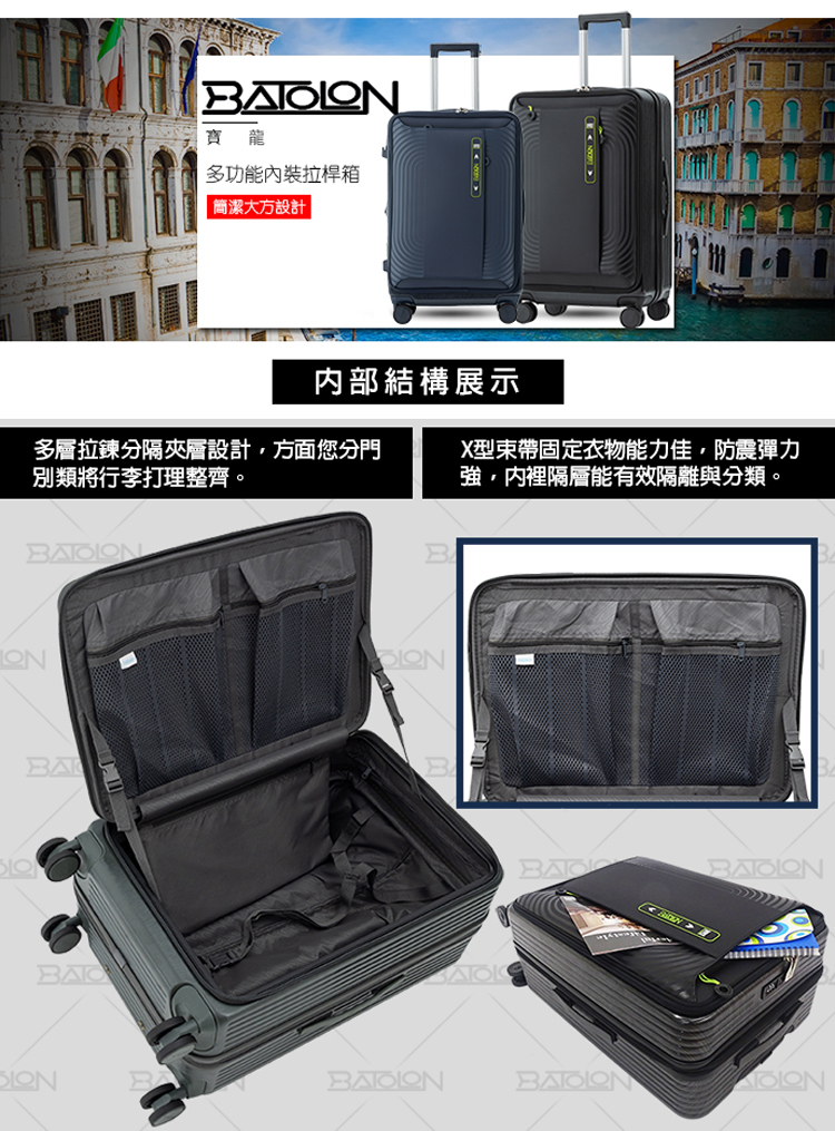【BATOLON寶龍 】20/24/29吋 慕尚前開式開合加大PC防爆拉鍊硬殼箱/行李箱 (3色任選)