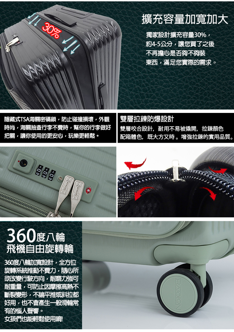 ◆尺寸(長*厚*高,含輪高):20吋/約33*24*54cm、24吋/約41*27*66cm、28吋/約48*32*78cm