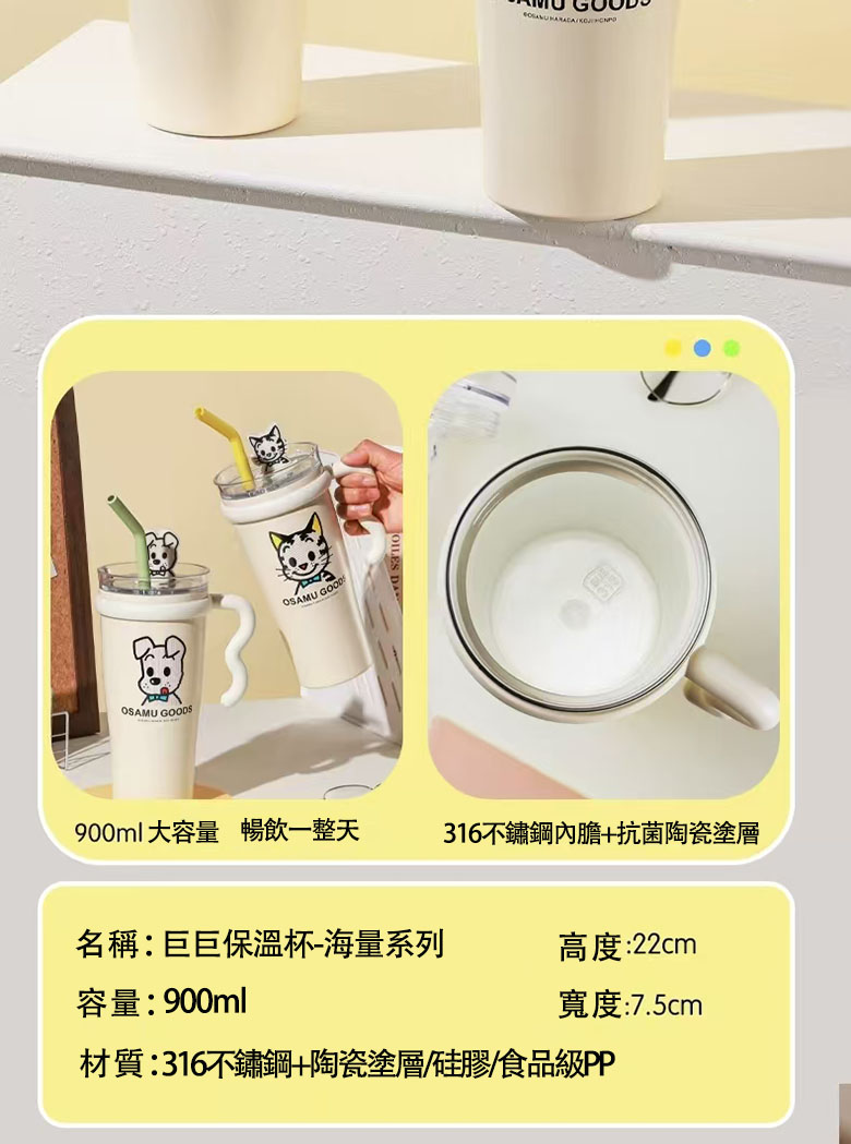 BEDDY BEAR 杯具熊 巨巨保溫杯 海量系列900ml帶柄吸管杯 茶水分離CAT