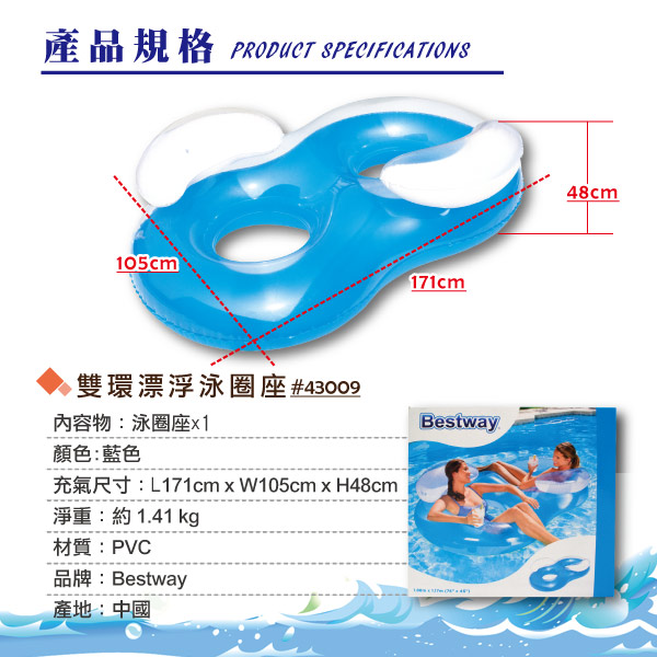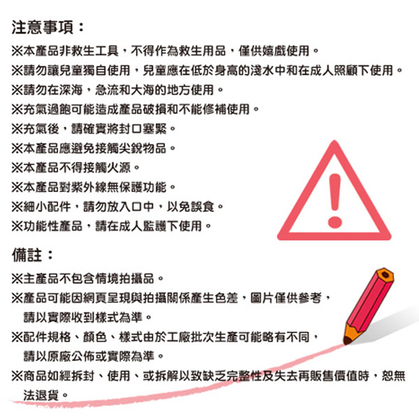 產品尺寸:171cm x 105cm x 48cm(充氣後尺寸)
