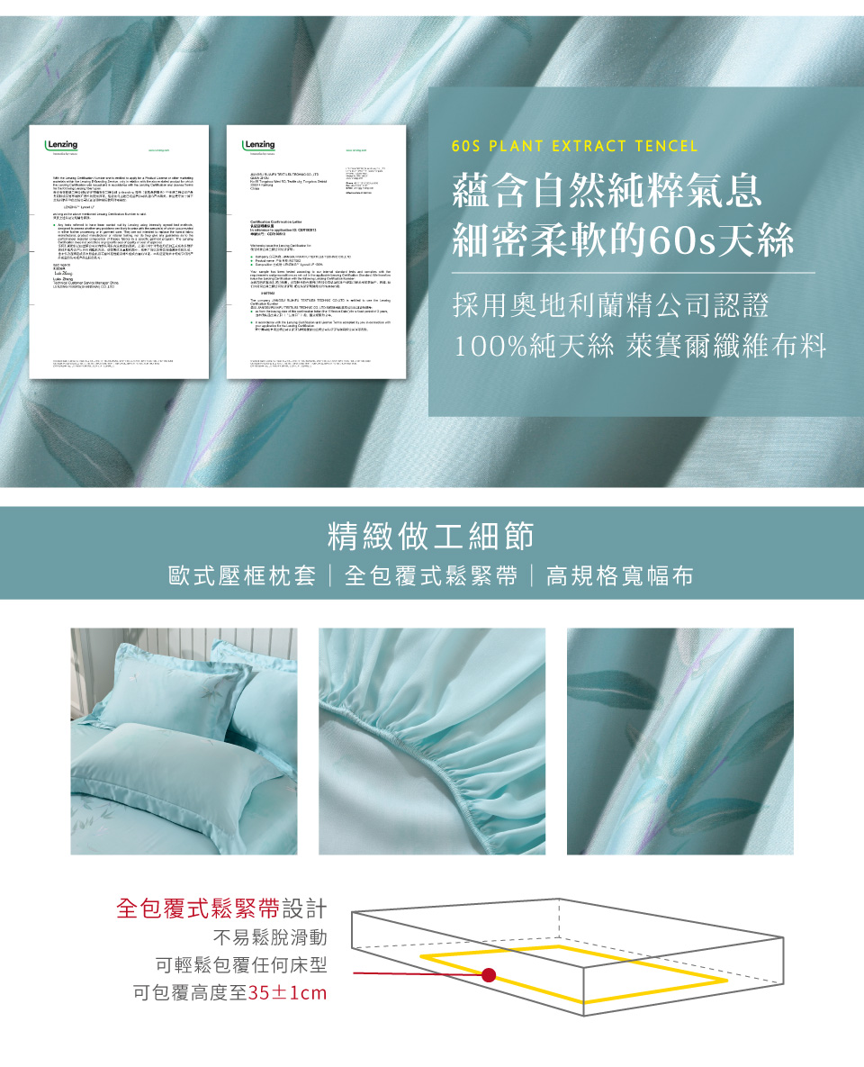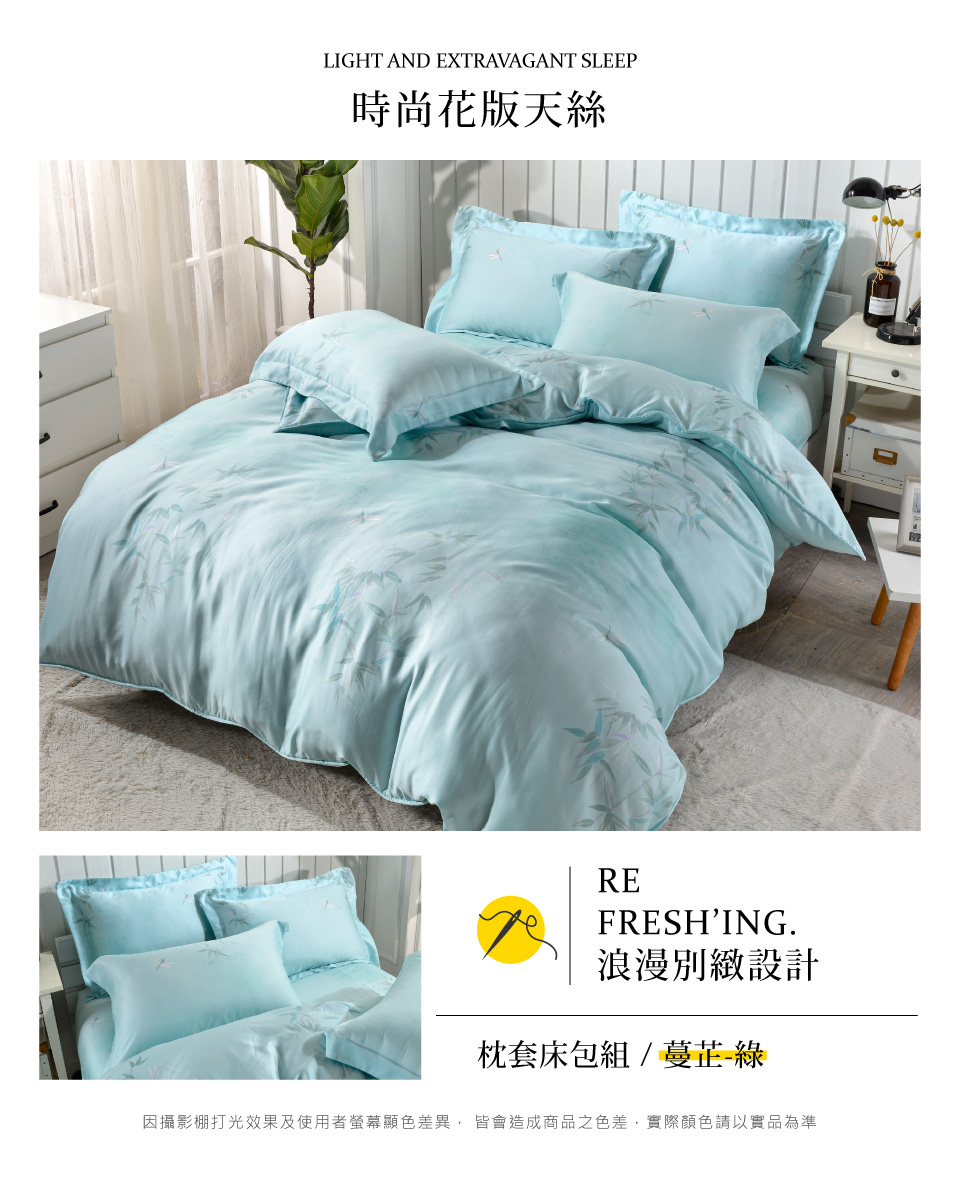 【Betrise貝翠絲】蔓芷-綠 | 時尚花版60支天絲枕套床包組-單人