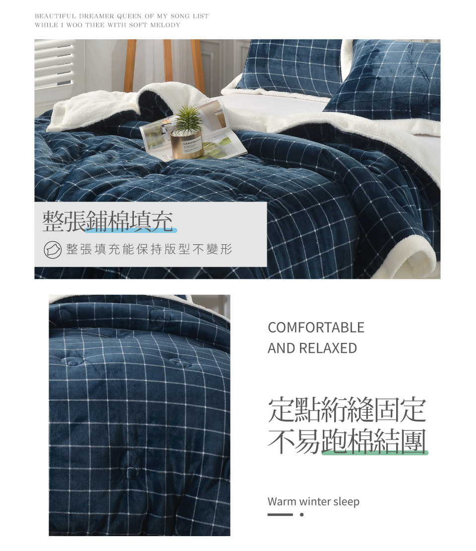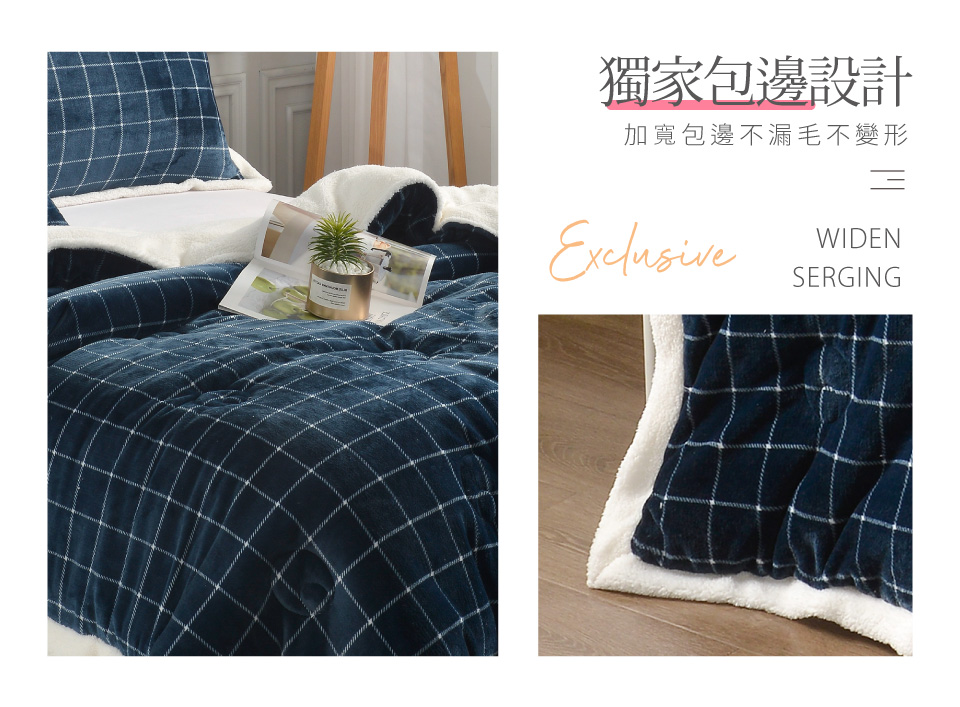 【Betrise貝翠絲】摩登藍 | 簡約牛奶絨X羊羔絨包邊雙面加厚多功能暖被
