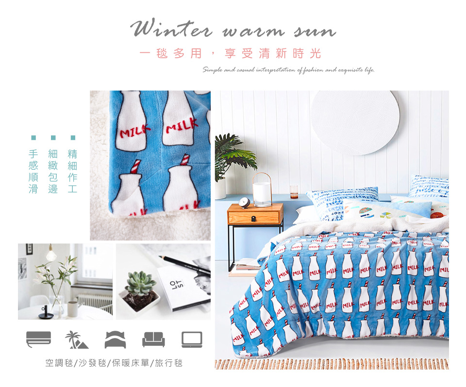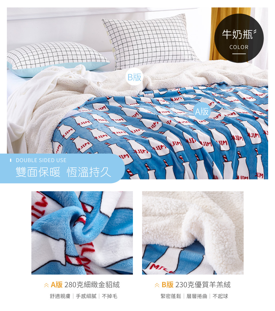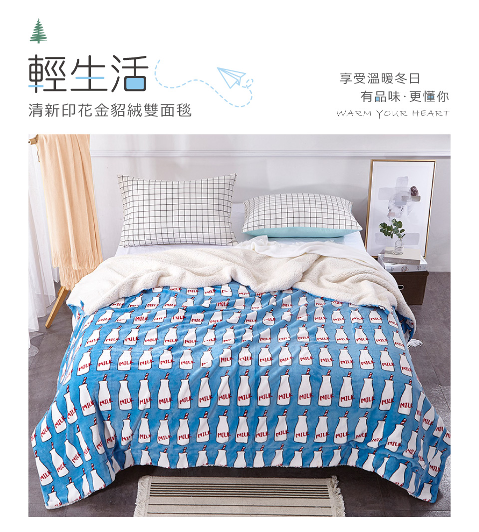 【Betrise貝翠絲】牛奶瓶 | 抗靜電升級款- 輕生活 清新印花暖柔金貂絨雙面毯150X200cm