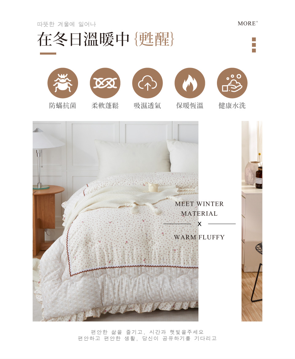 ☆韓國熱銷 ★免代購★可水洗 抗菌 好質量☆精緻荷葉蕾絲工藝☆德國SILVER防蟎抗菌處理☆整張羽絲棉填充,可水洗不跑位☆獨家設計 加厚款升級☆環保印染 透氣、保暖、不悶熱☆安心寢具認證 SGS檢驗合格