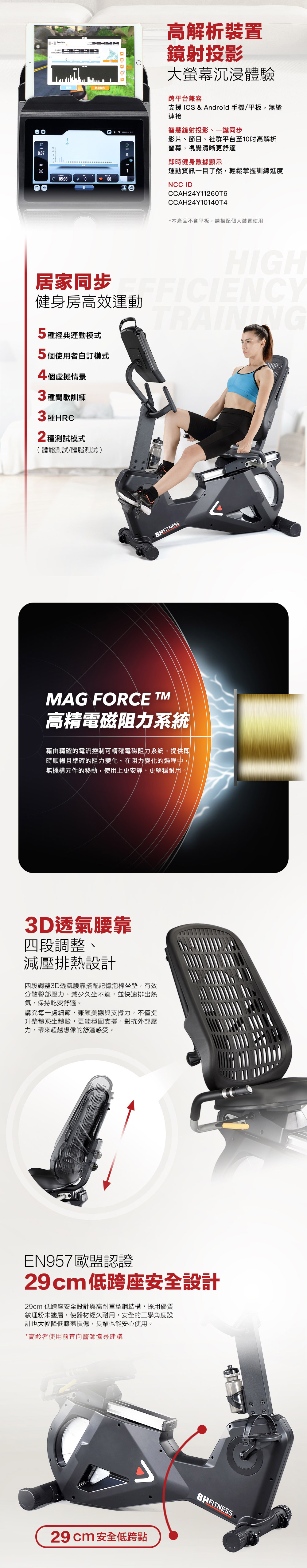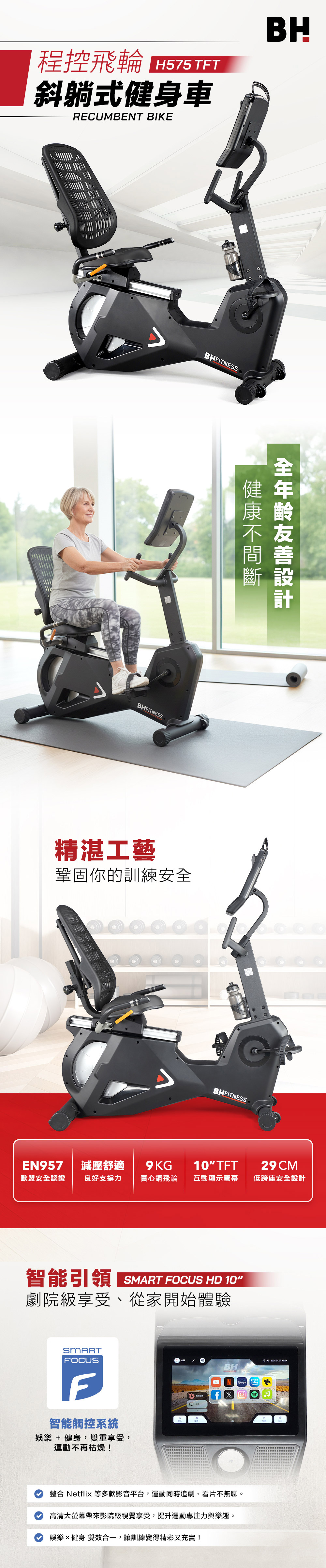 【BH歐洲百年品牌】H575TFT RS智能飛輪斜躺式健身車