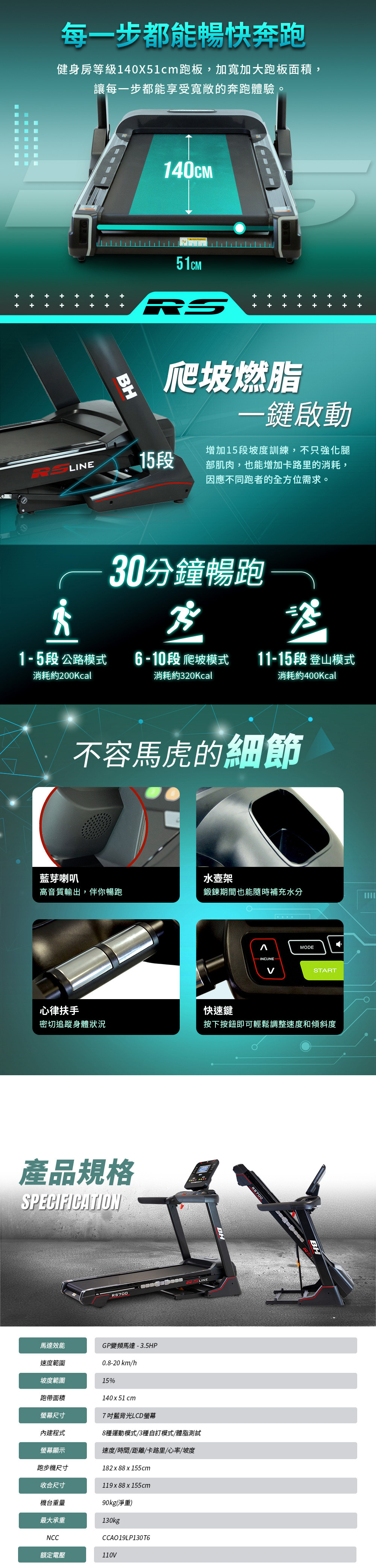【BH歐洲百年品牌】RS700 LCD 變頻跑步機
