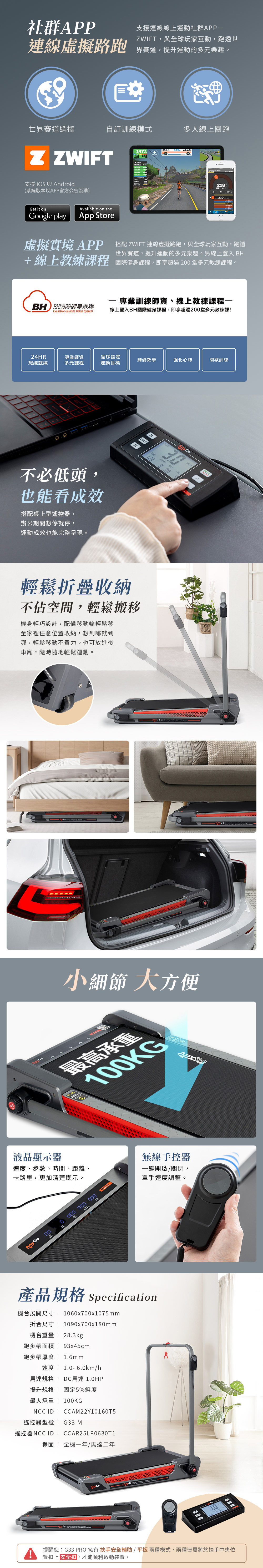 【BH歐洲百年品牌】G33 Pro Any Go 扶手避震慢跑機