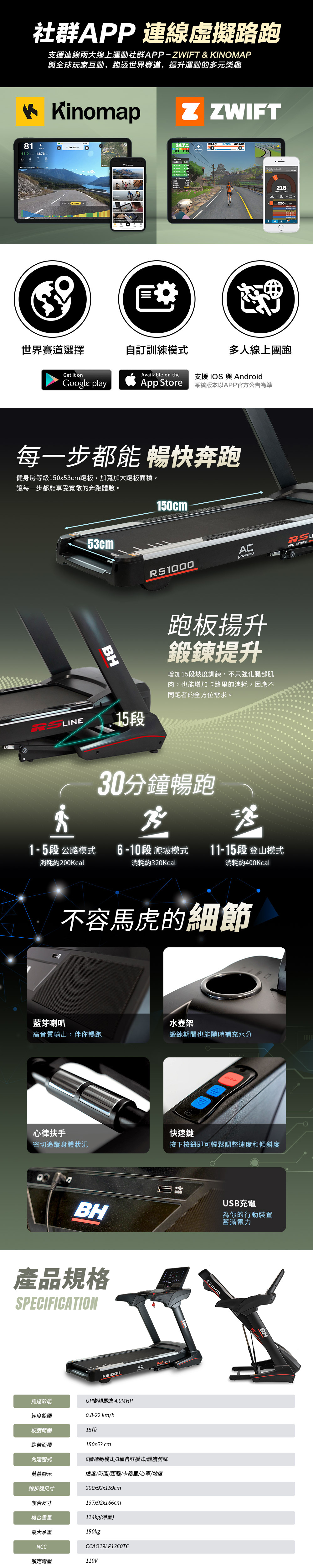 【BH歐洲百年品牌】RS1000 LED智能變頻跑步機(預購-4/10到貨)