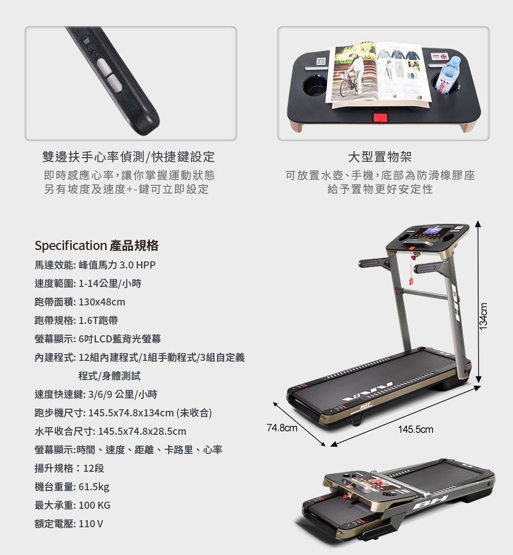 【BH歐洲百年品牌】G7065B 巧收桌板跑步機