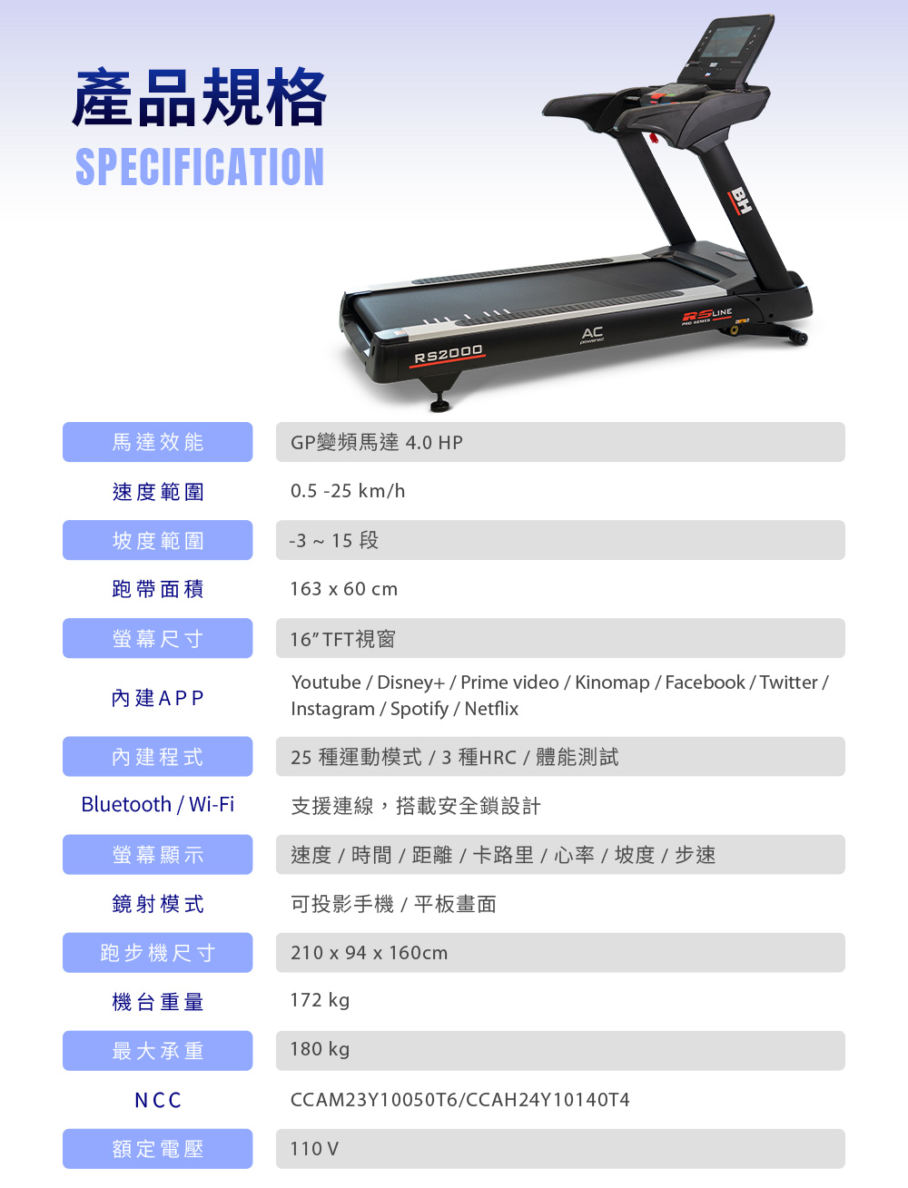 【BH歐洲百年品牌】商用 RS2000 TFT 智能變頻跑步機